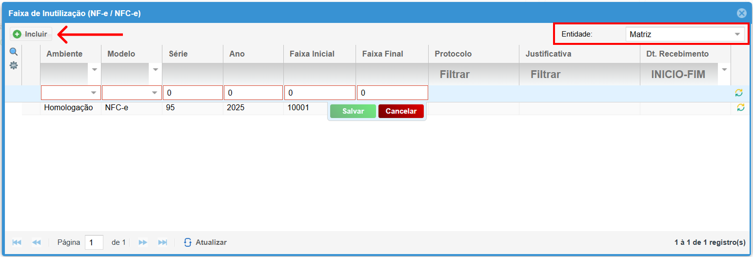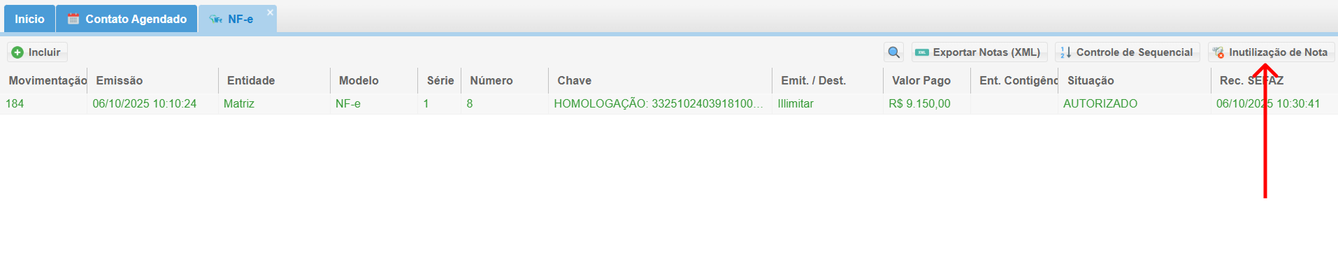 - Navegue até o menu: NF-e > Inutilização de Nota