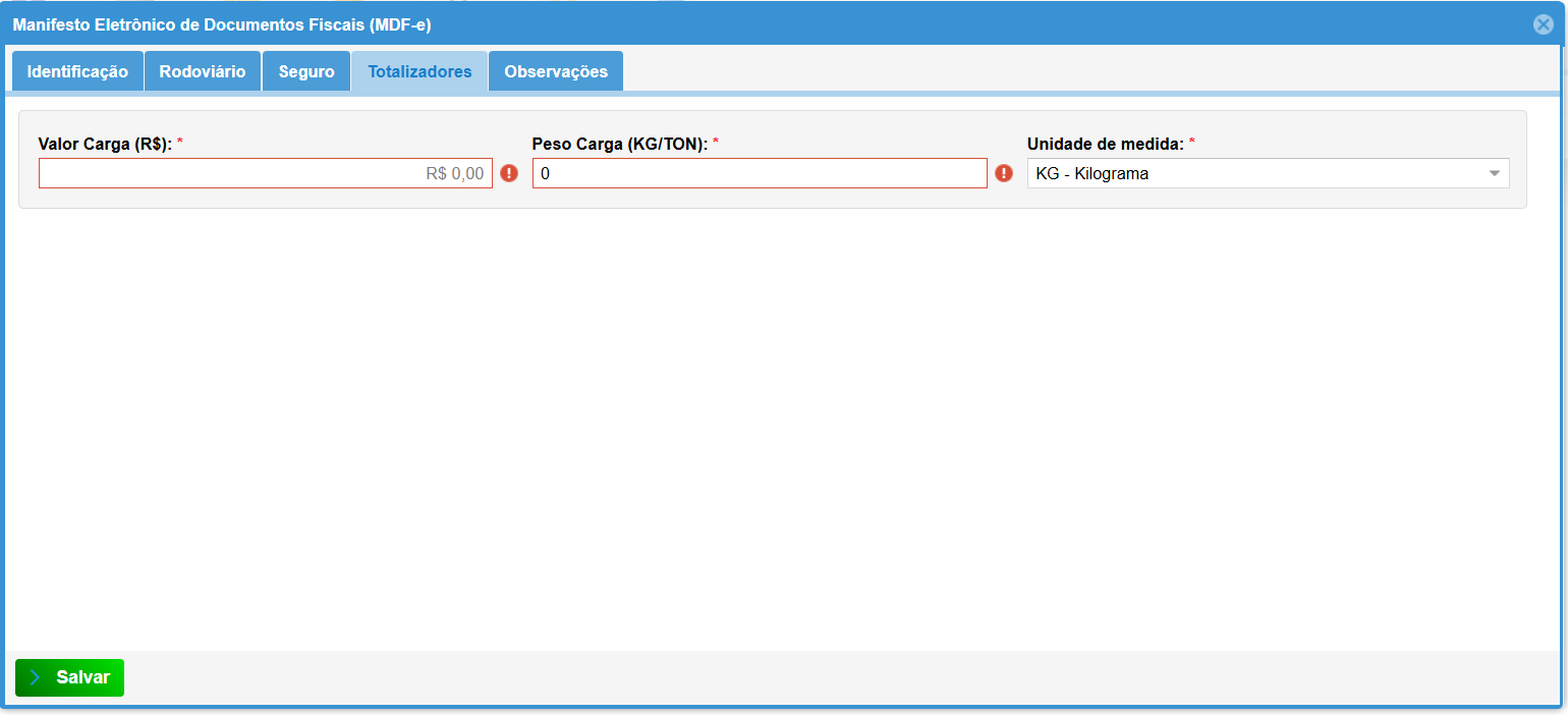 - 3.4 Aba Totalizadores OBRIGATÓRIOS: