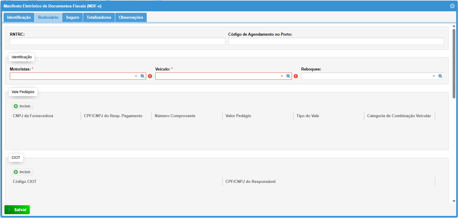 - Motoristas: Informe os dados dos motoristas que conduzirão o veículo.