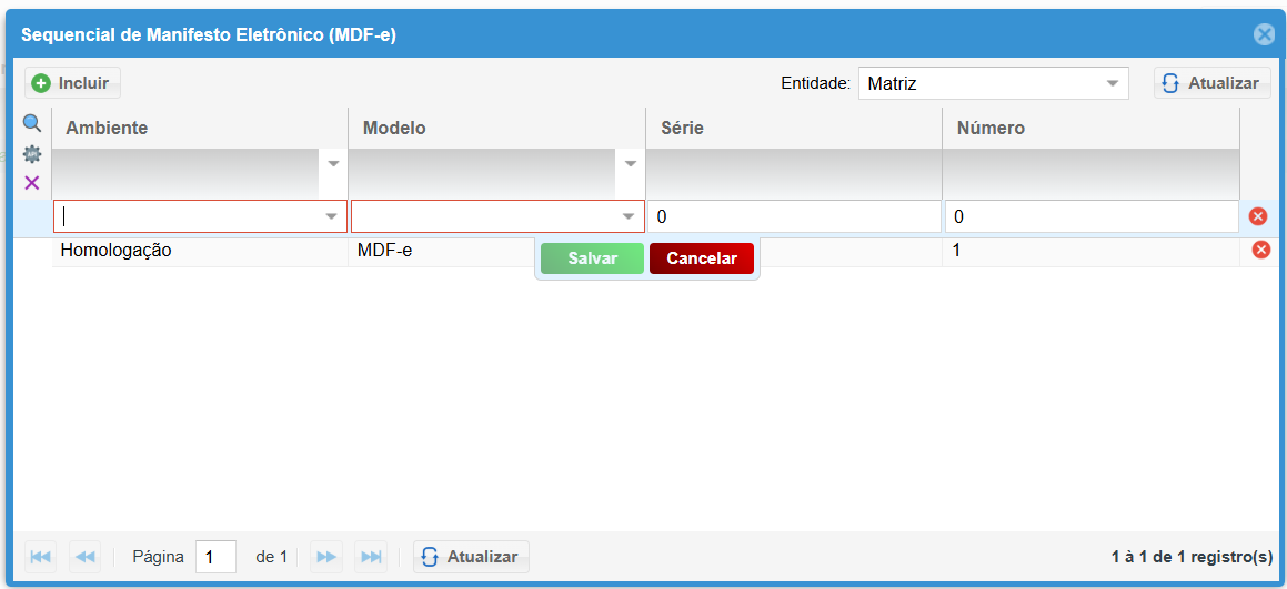 - Número: Informe o número inicial da sequência de numeração das MDF-es.