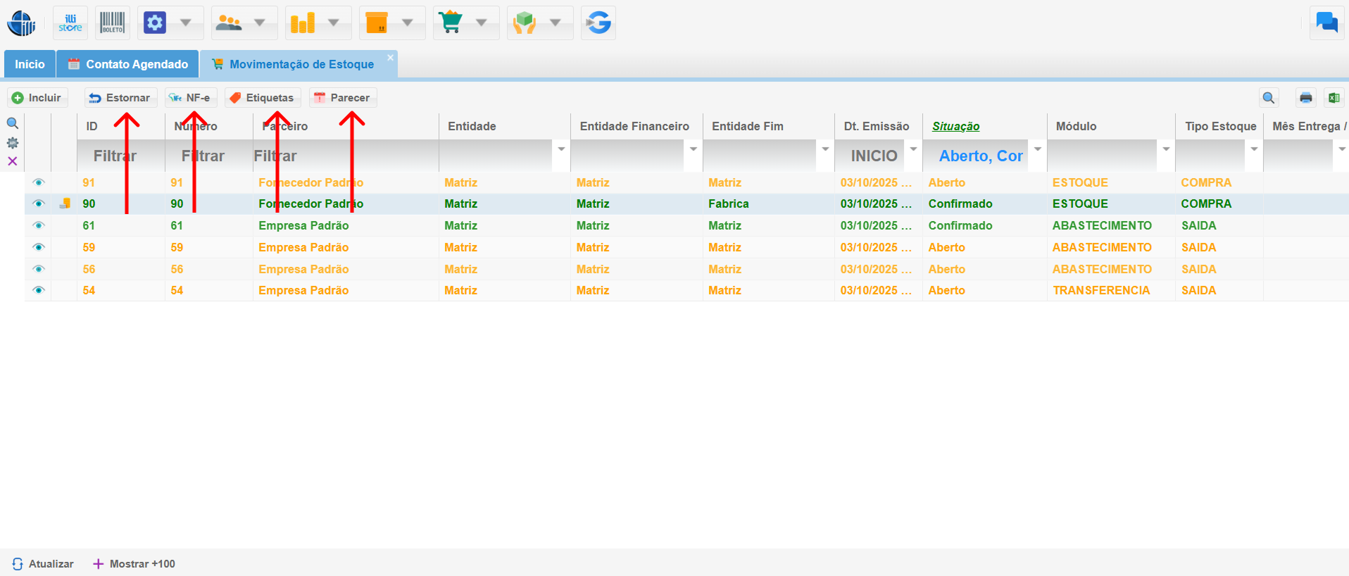 - Movimentação Aberta: Selecione a movimentação com a situação "Aberto".
