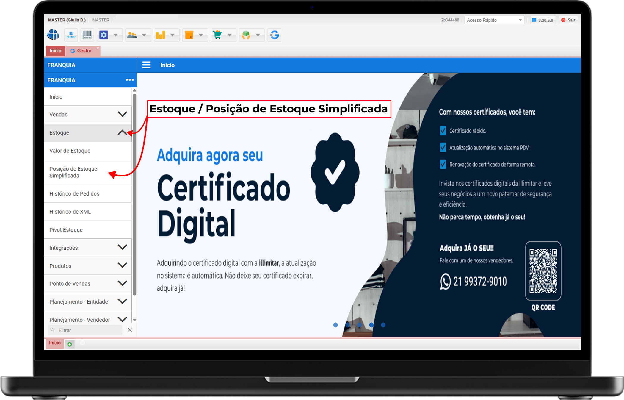 - Inclusão de Vendas do Dia: Diferente do relatório "Valor de Estoque", a Posição de Estoque Simplificada já contabiliza as vendas e movimentações que ocorreram hoje. Por isso, o saldo total pode ser diferente, pois é mais atualizado.
