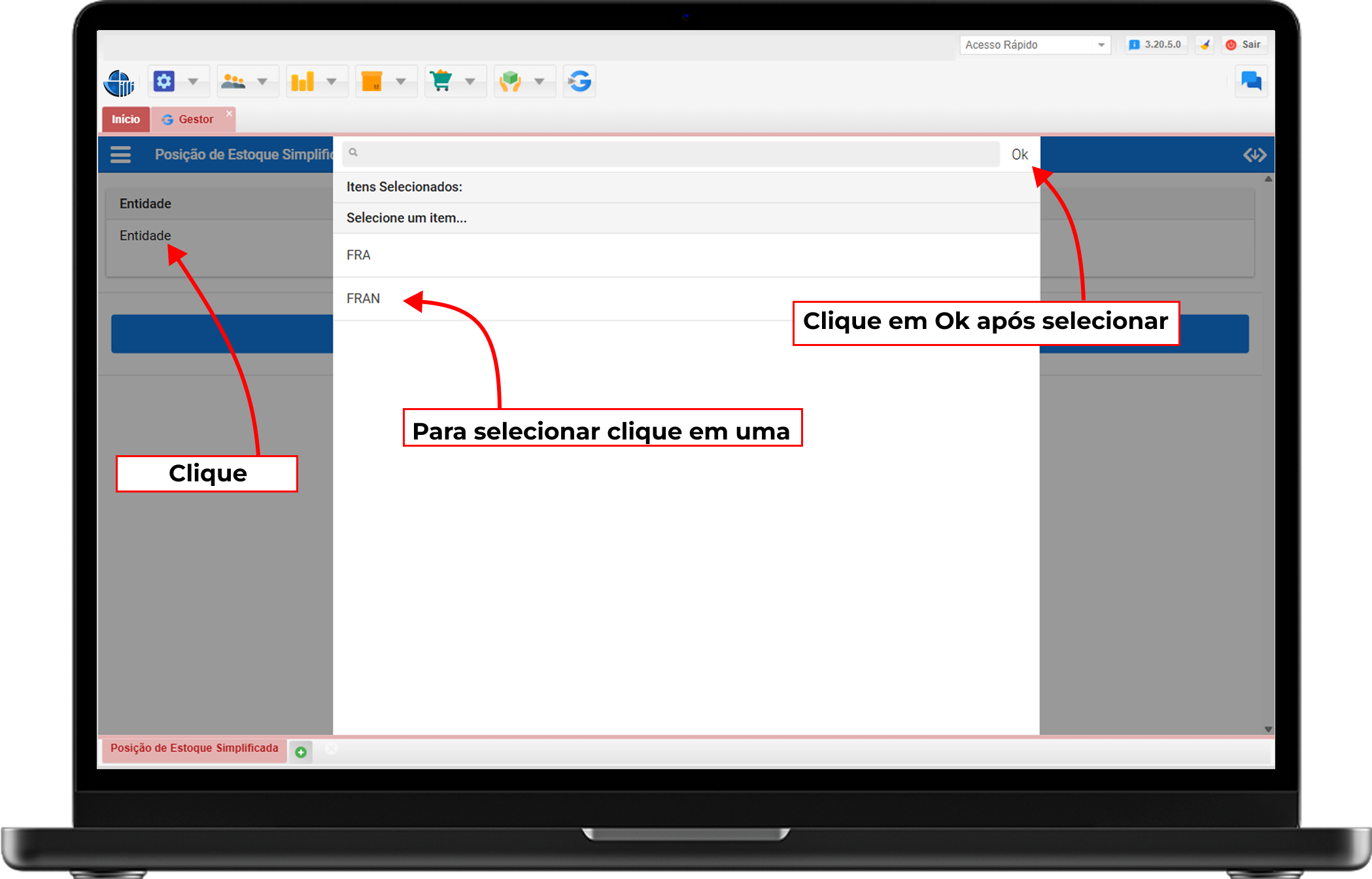 O sistema exibirá todas as entidades (lojas) às quais o seu usuário tem acesso.