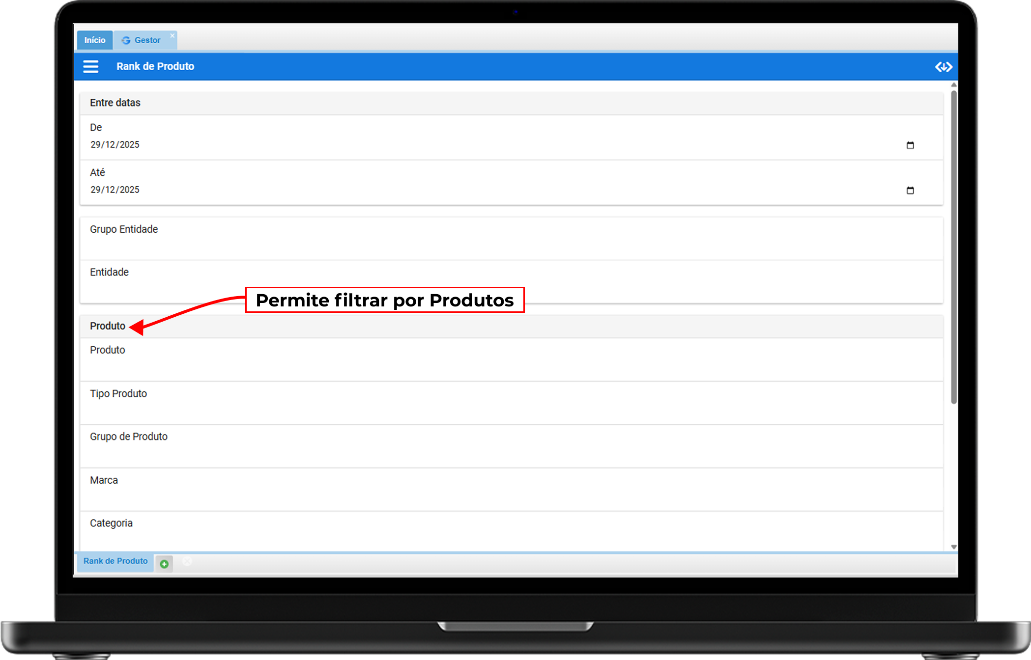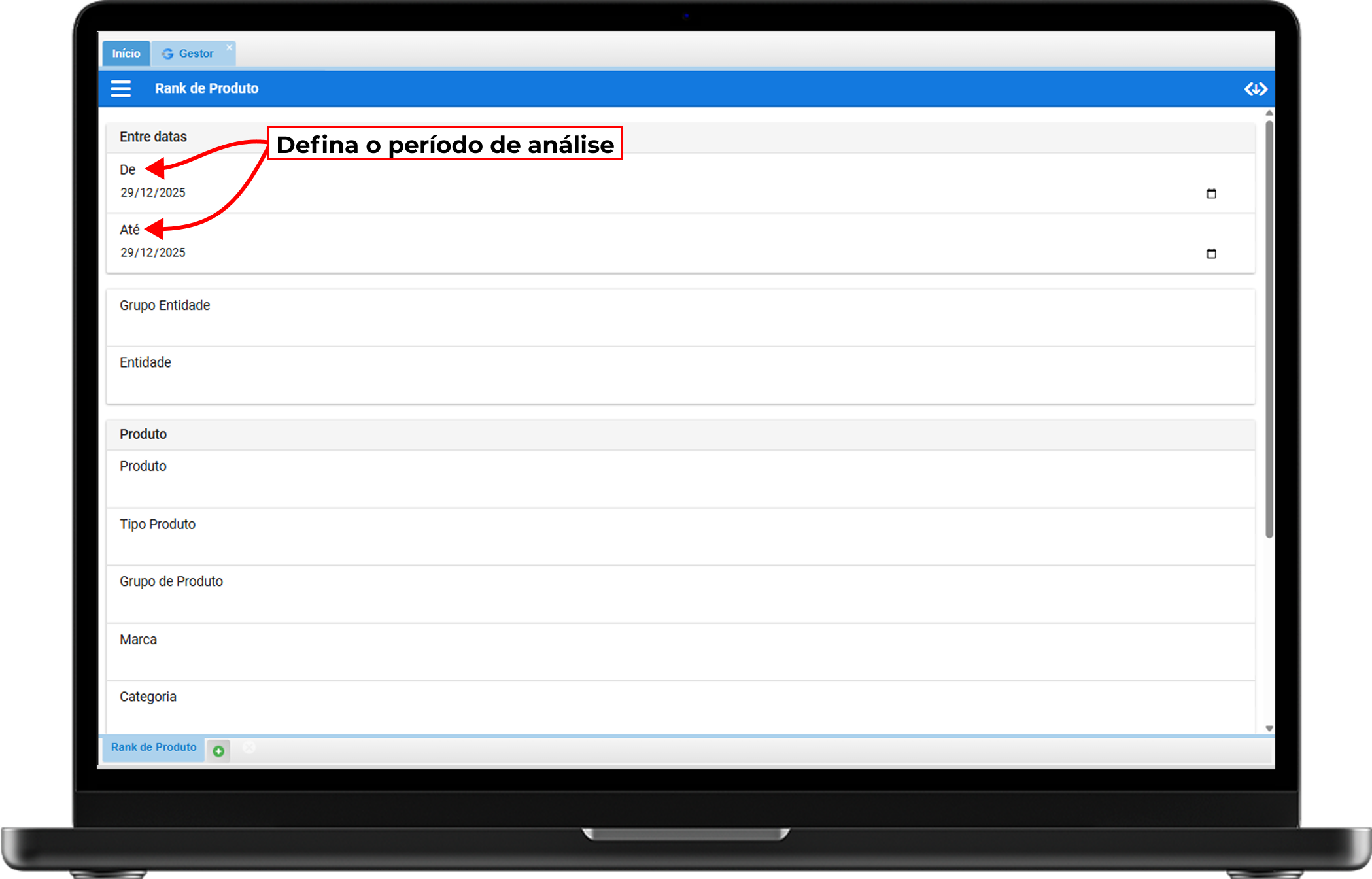 Dica: Se deixar este campo vazio, o sistema trará o rank de todos os produtos vendidos no período.