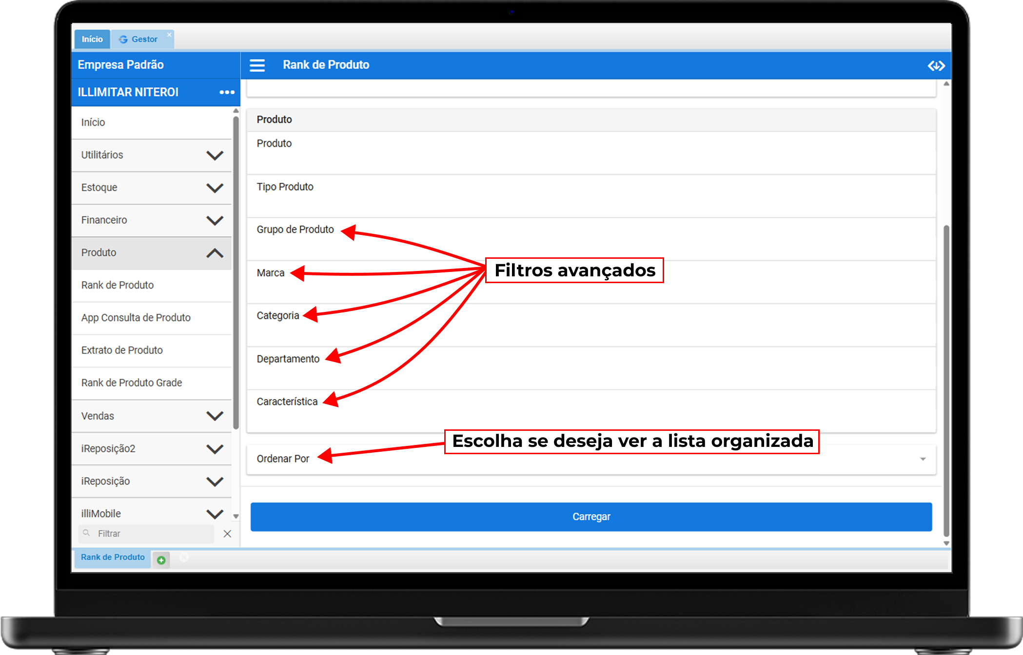 Filtros Avançados: Refine sua busca por Grupo de Produto, Marca, Categoria, Departamento ou Característica (como cor ou tamanho).