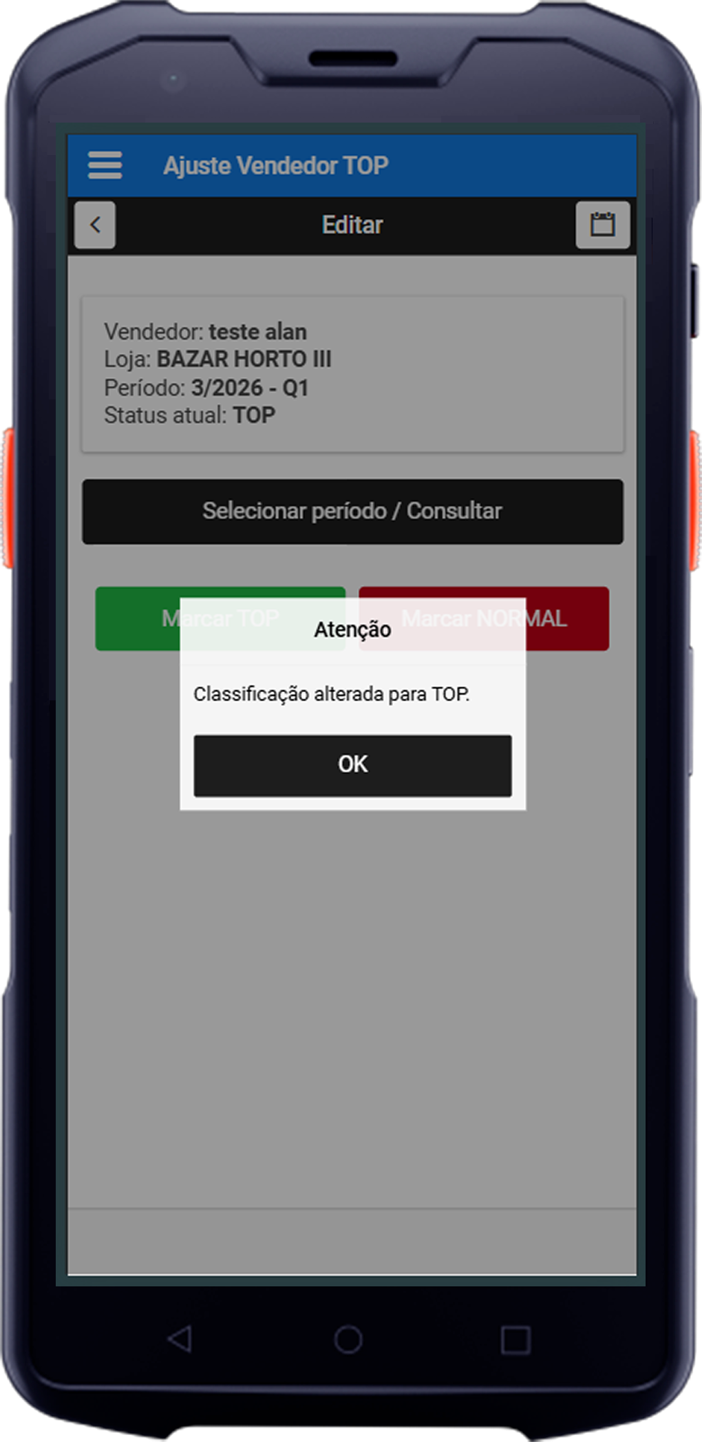 - Ação: O gerente clica em Marcar Top e confirma no OK.