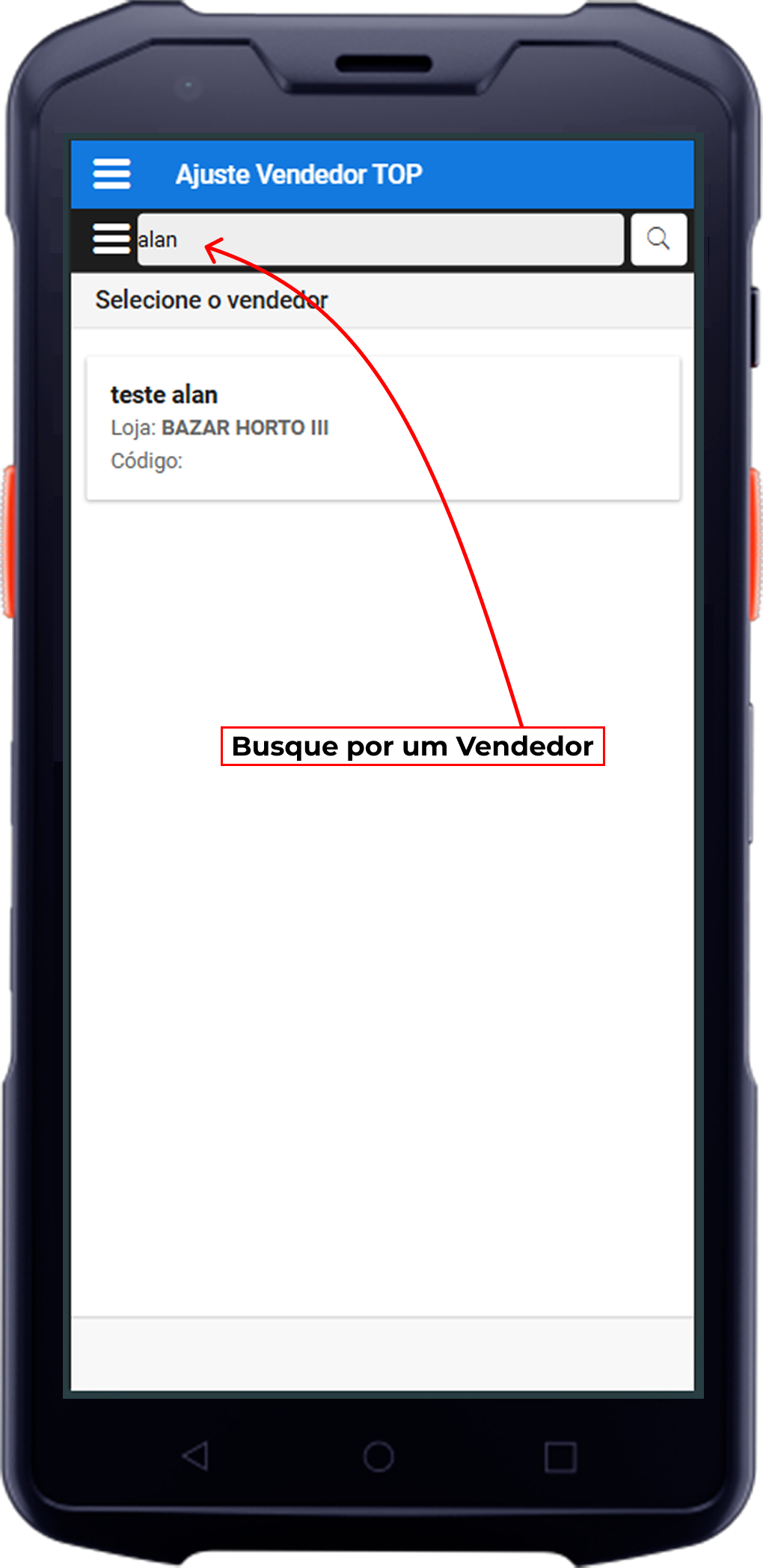 - Utilize o campo de busca para digitar o nome do Vendedor (ou cliente/vendedor, conforme o cadastro).