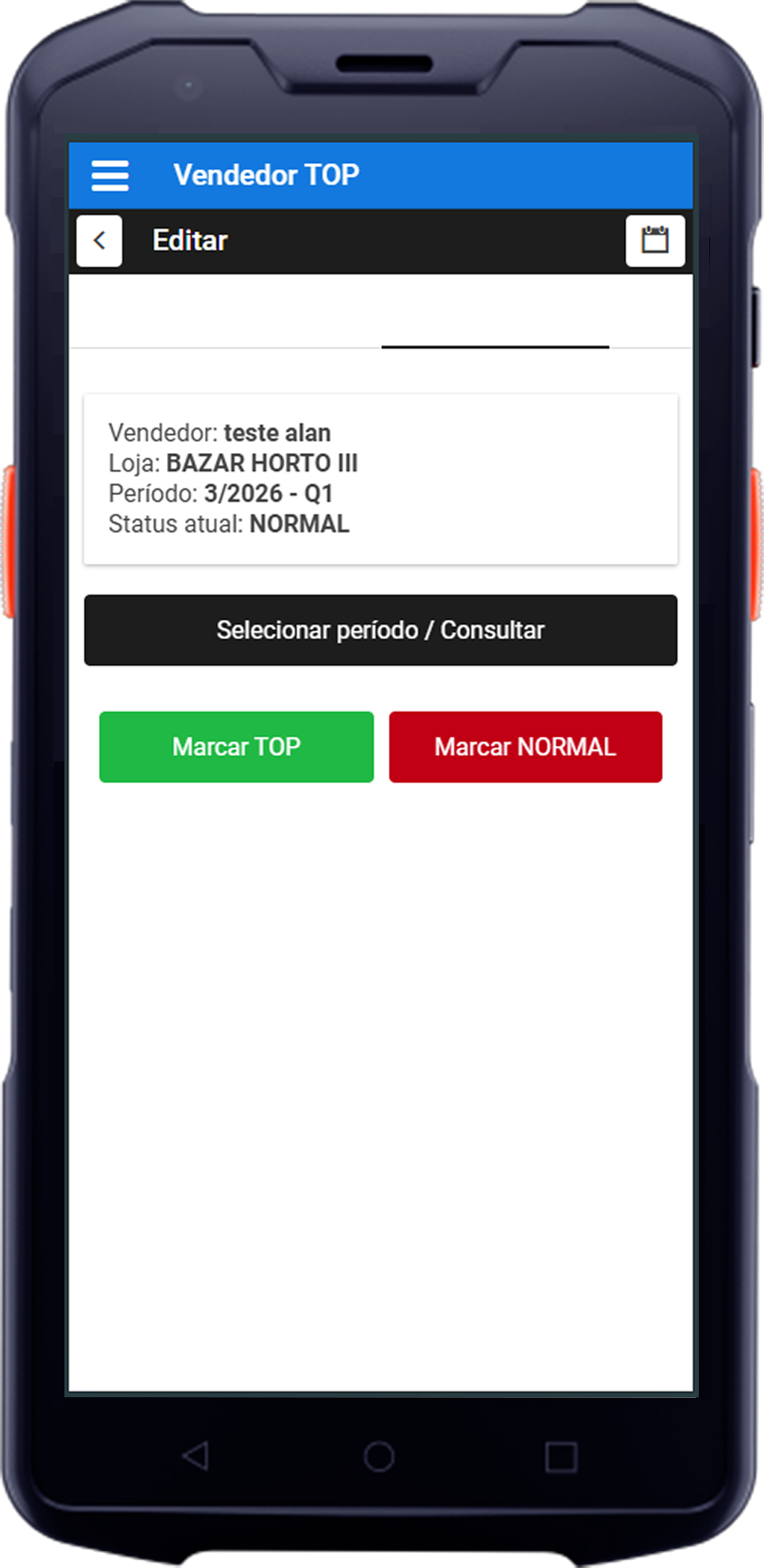 O App Vendedor Top é uma ferramenta exclusiva para a gestão, permitindo que os gerentes classifiquem o desempenho da equipa de vendas com base no cumprimento de metas.