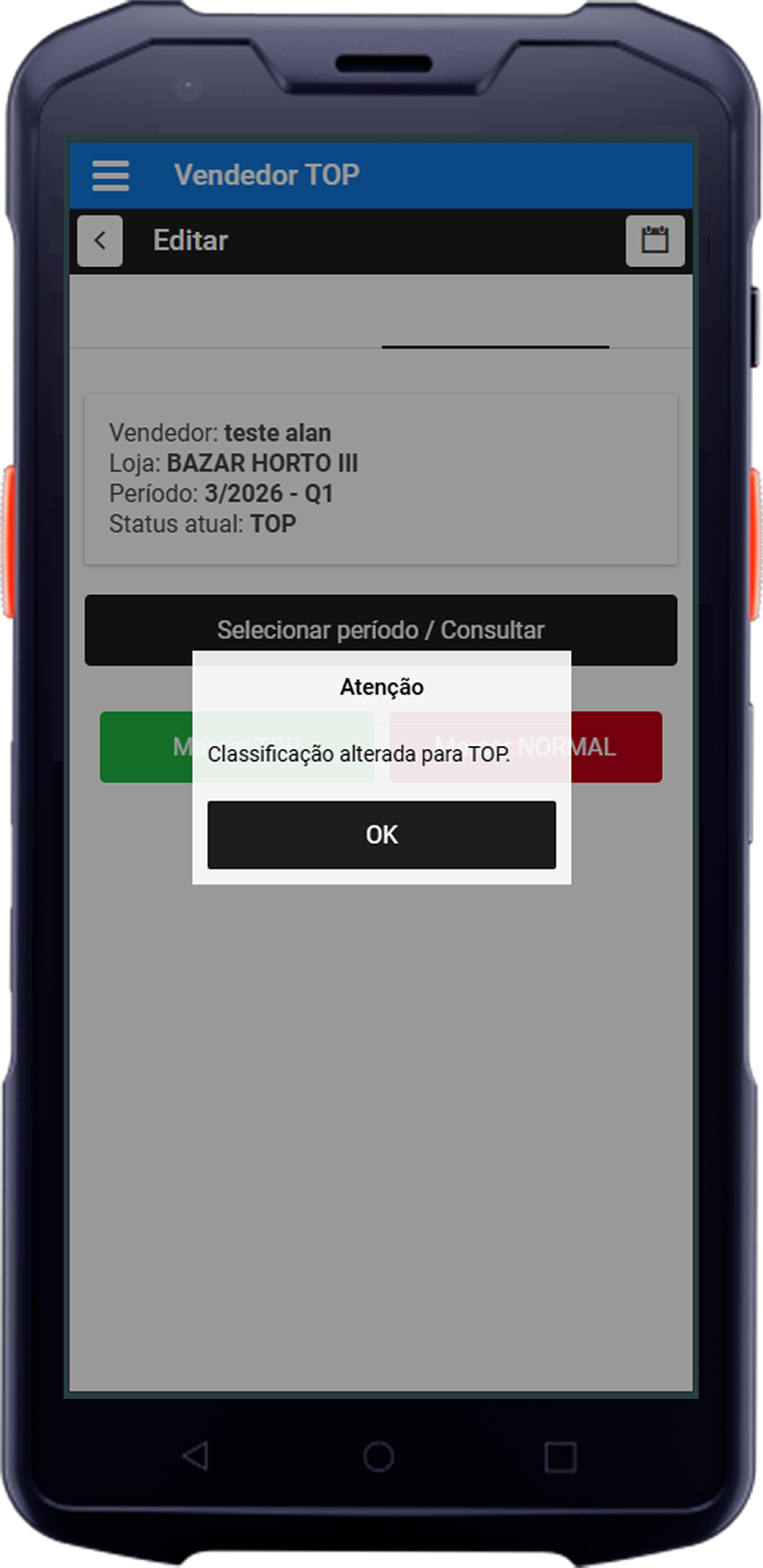 - Ação: O gerente clica em Marcar Top e confirma no OK.