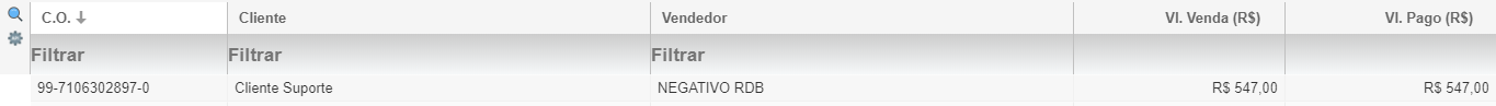 - A seguinte tela será exibida com a lista de vendas.