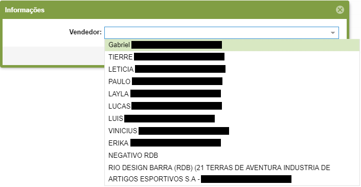 - Na nova tela, selecione o novo vendedor que será registrado para a venda.