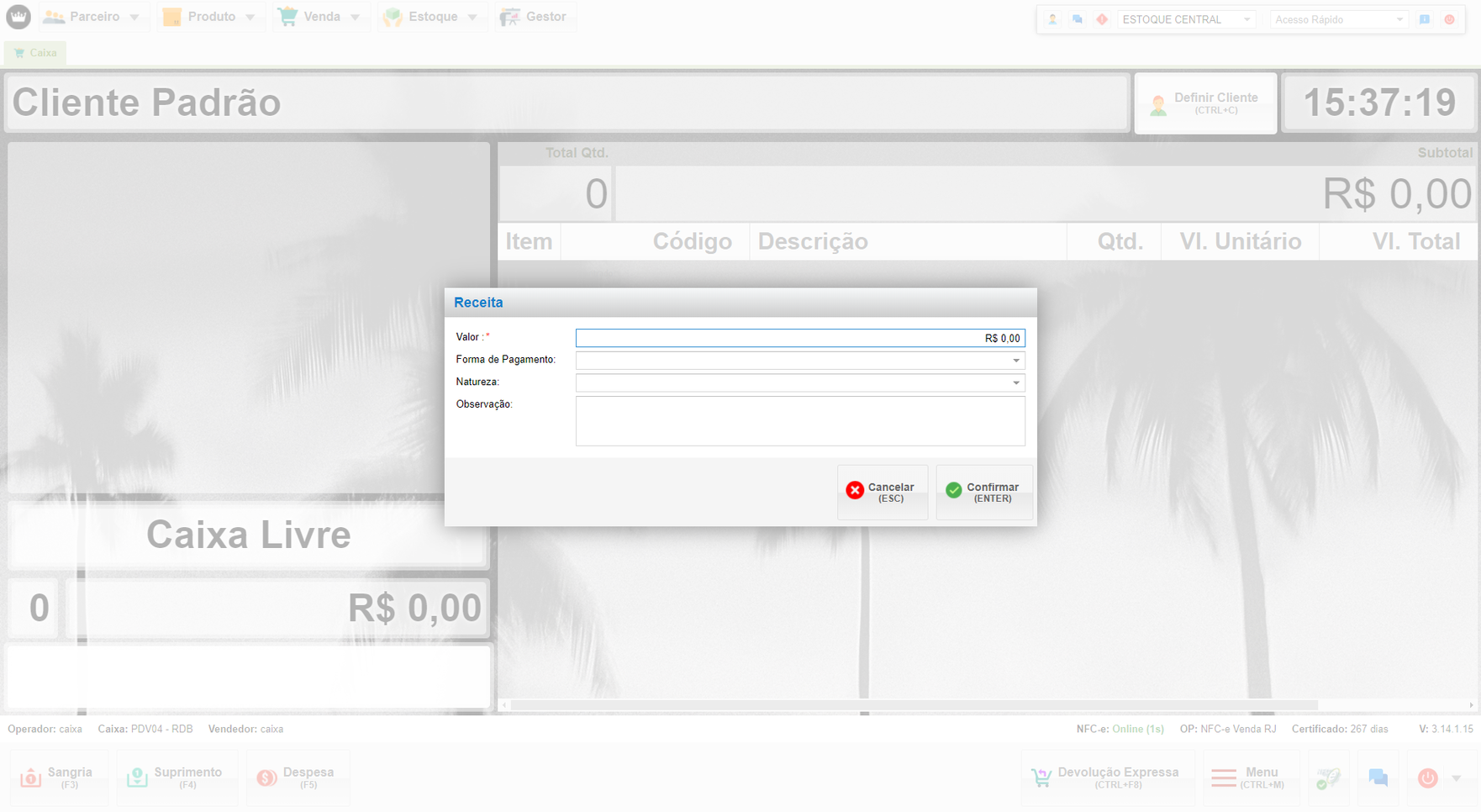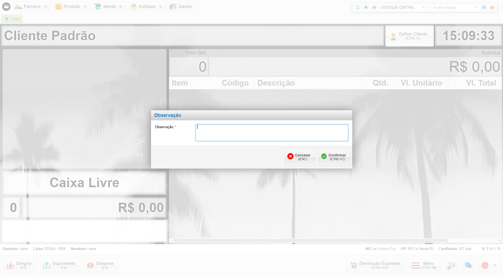 Reiniciar Caixa (CTRL + SHIFT + R)