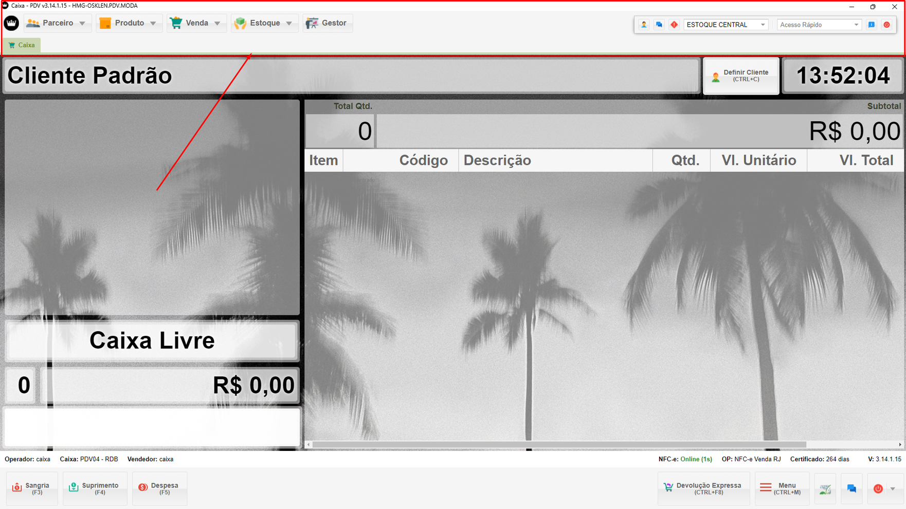 - Coloque o PDV em tela cheia, ocultando o menu.