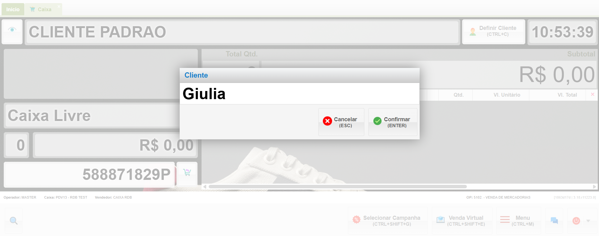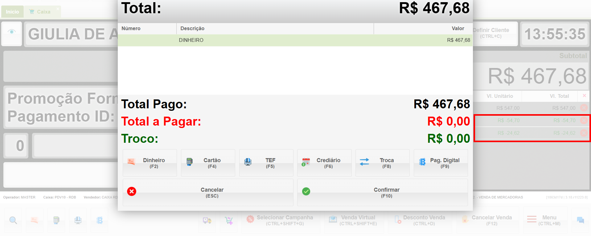 O sistema voltará ao carrinho do PDV e pedirá a confirmação do valor e da forma de pagamento.
