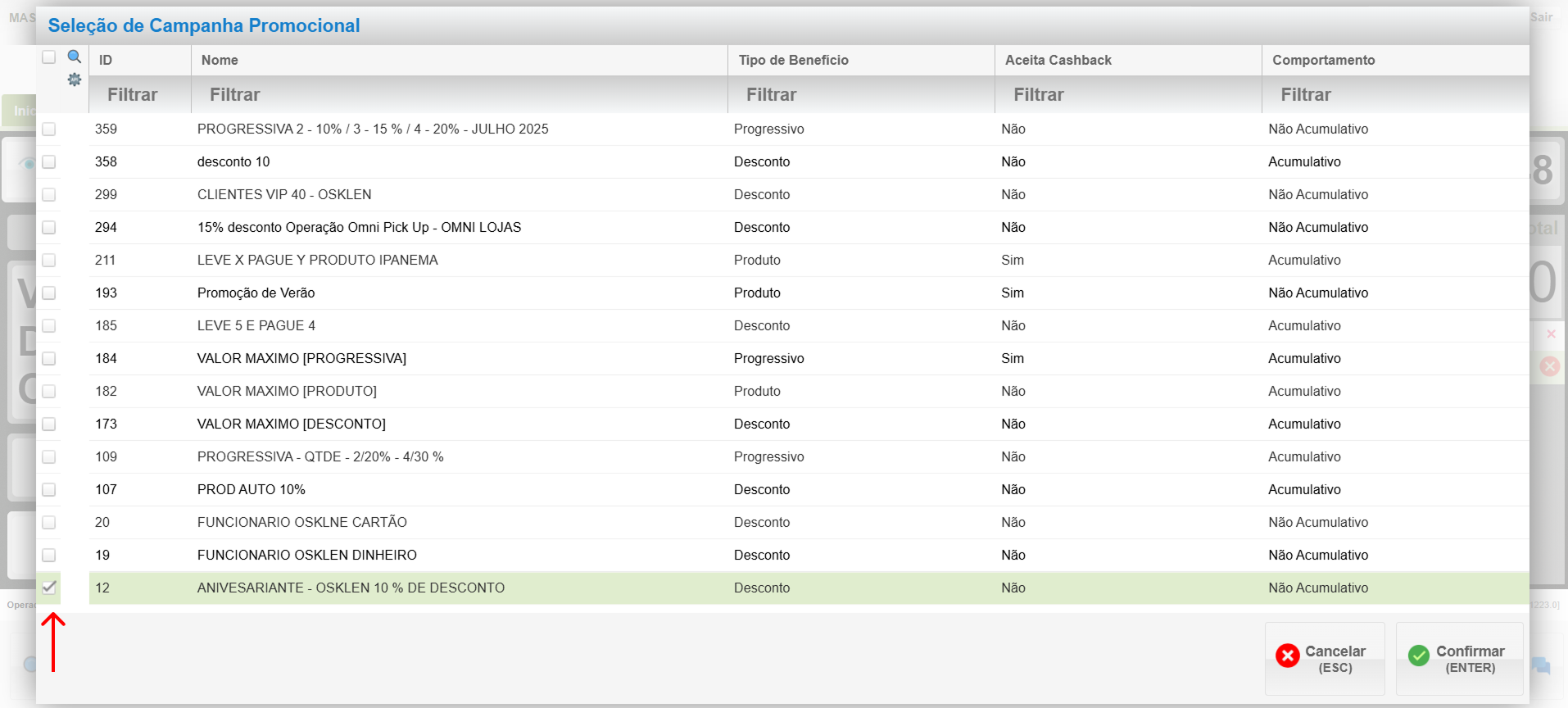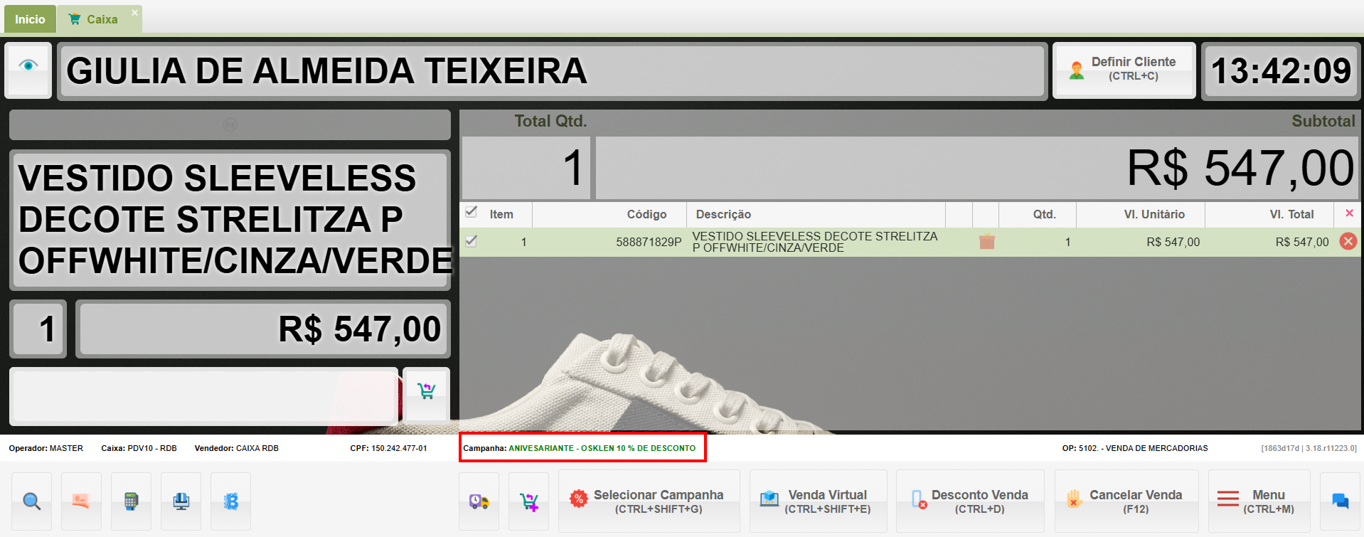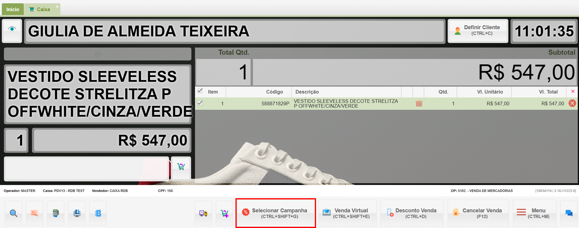- Uma vez selecionada a campanha, a indicação aparecerá no PDV.