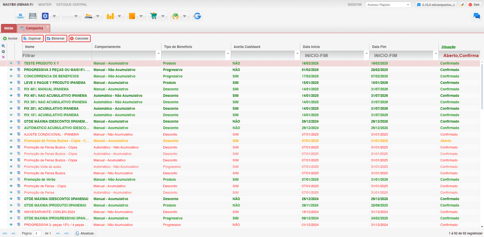 - Estorno de Campanha: Reverta uma campanha que já foi aplicada.