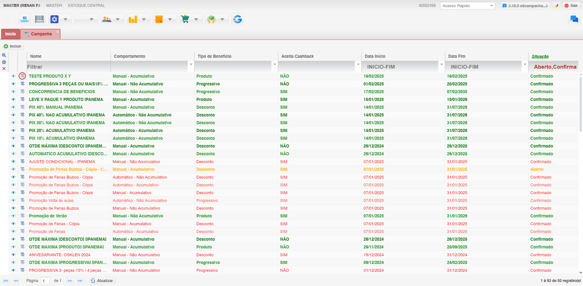 - Estorno de Campanha: Reverta uma campanha que já foi aplicada.