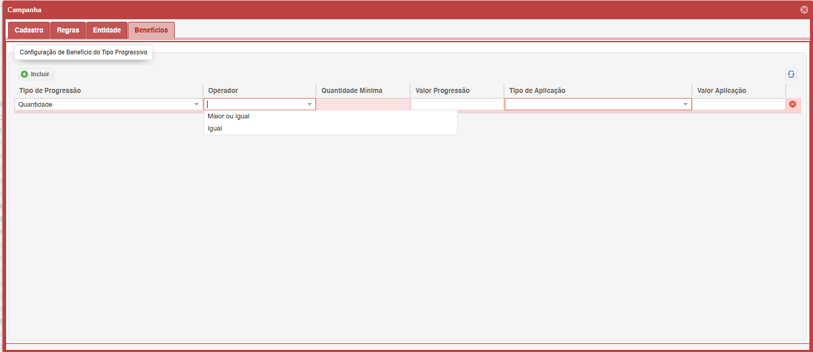 Benefício Progressivo : No benefício progressivo, você configura descontos que aumentam de acordo com a quantidade ou valor dos produtos.