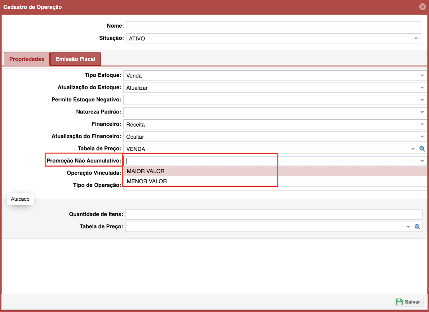 - Maior ou Igual: O desconto é aplicado quando a quantidade ou valor for maior ou igual ao definido.