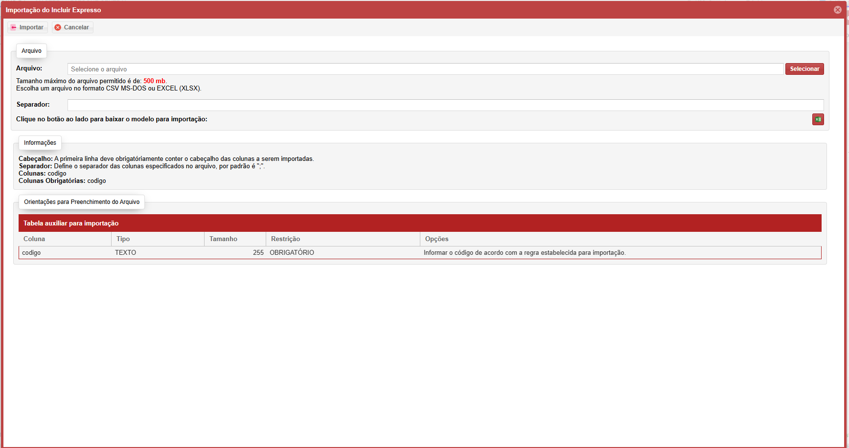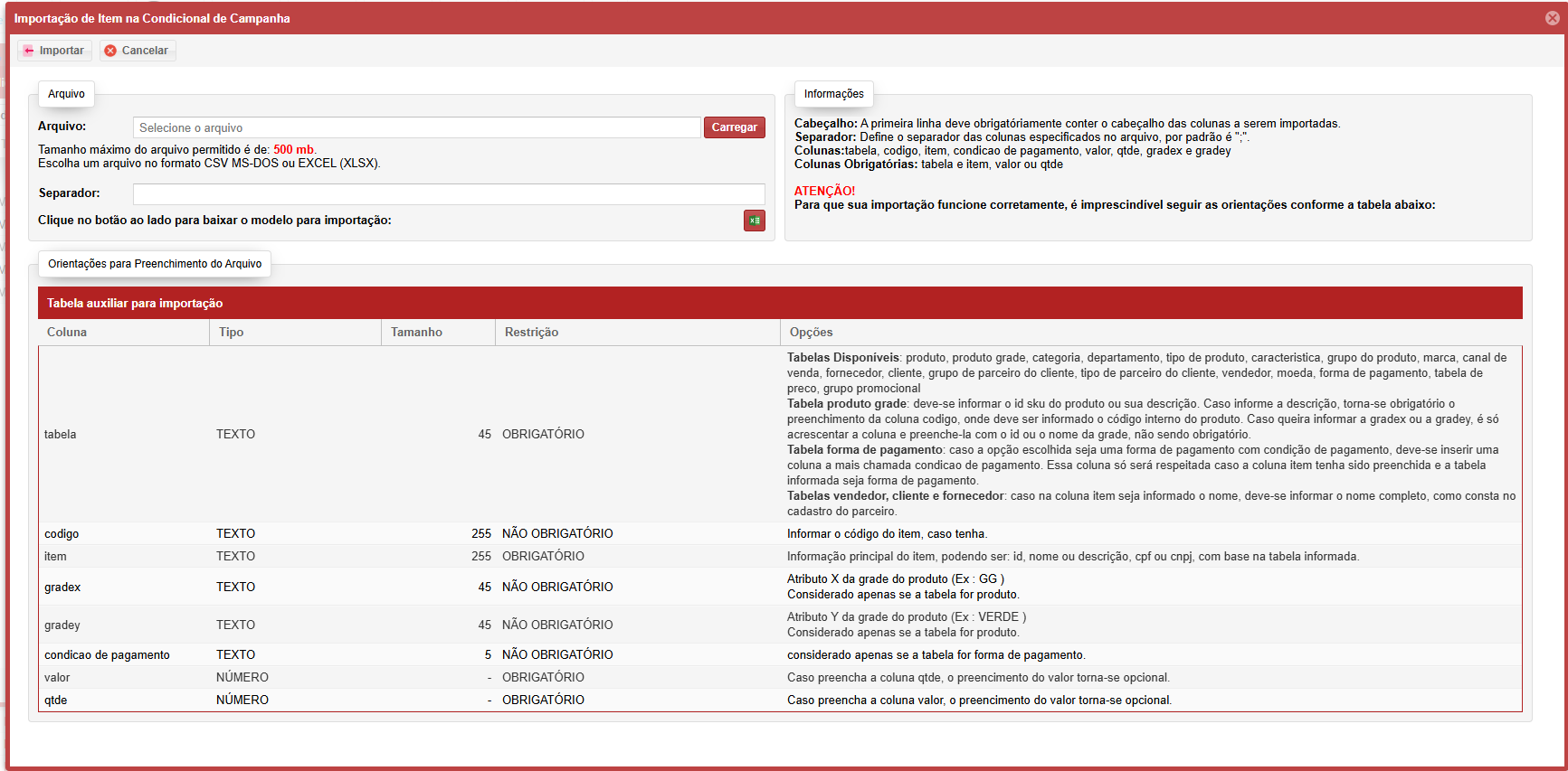 ATENÇÃO! Para que sua Importação funcione corretamente, é imprescindível seguir as orientações a seguir: