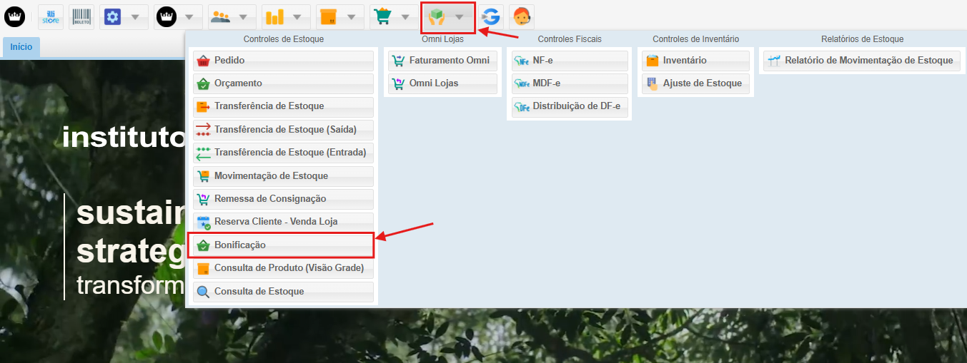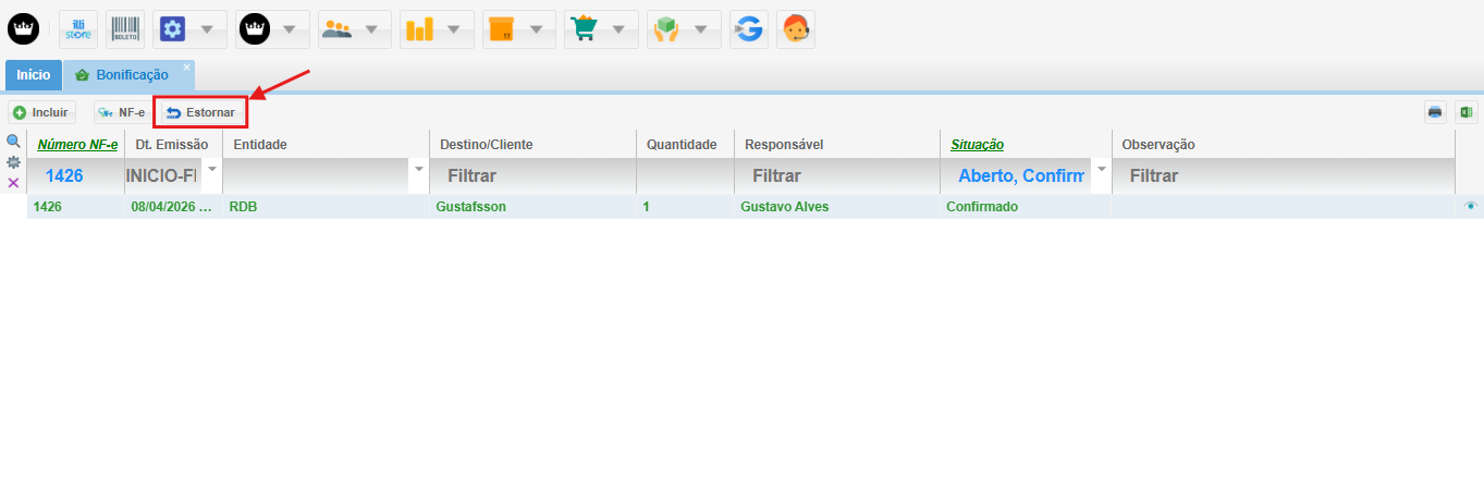 - Automaticamente ao selecionar a bonificação e Estornar, vai iniciar o processo de cancelamento da nota. Só seguir com o fluxo de cancelamento informando a justificativa.