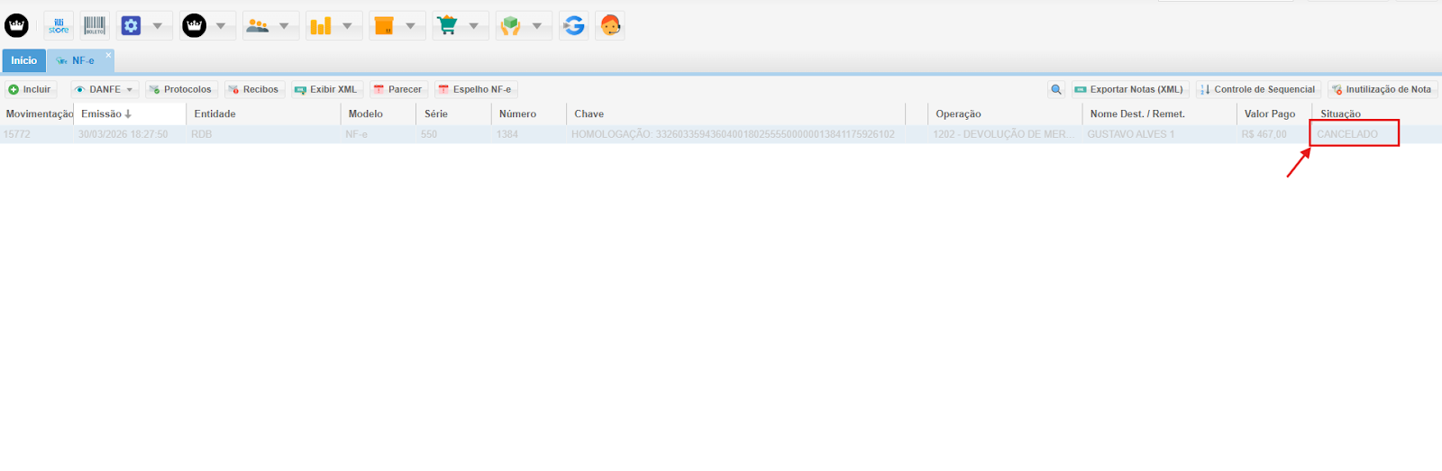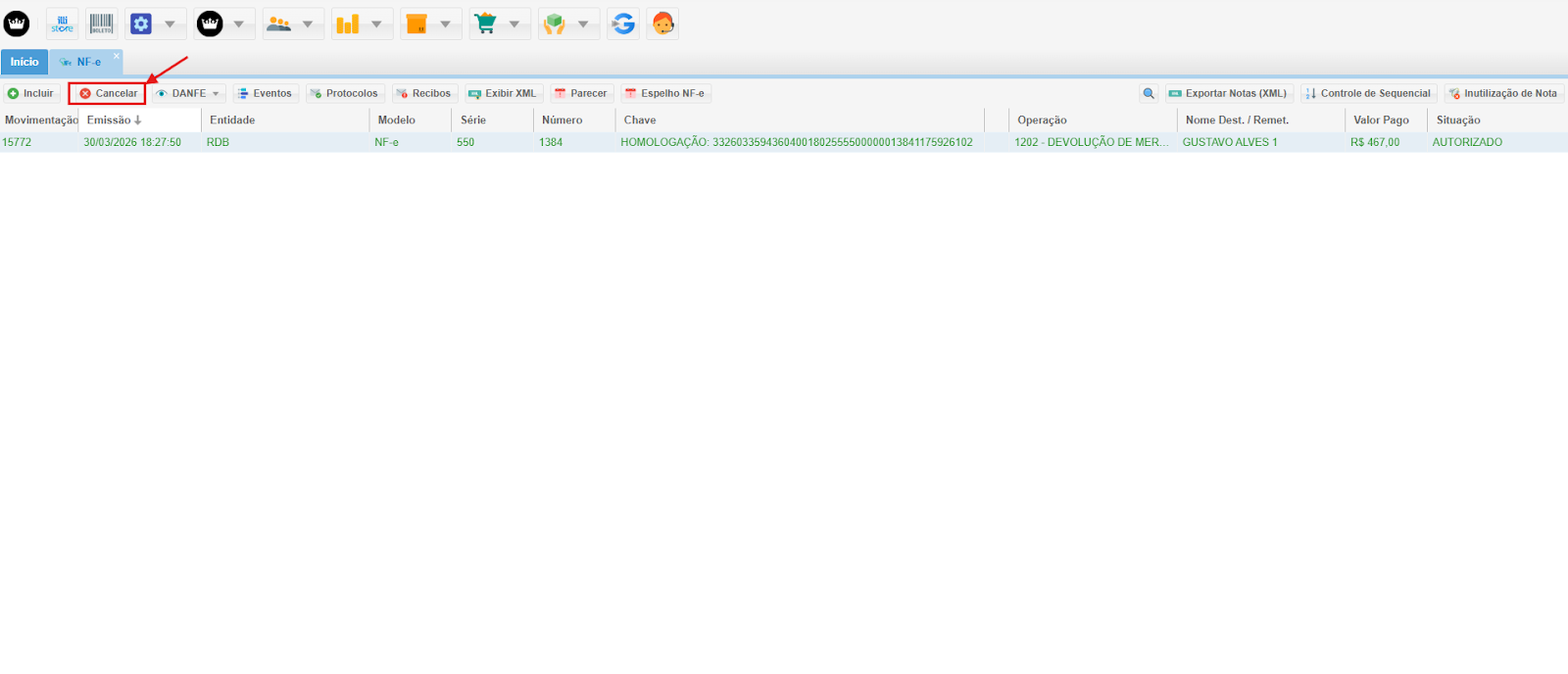 Esta funcionalidade permite realizar o Cancelamento de NF-e que já obtiveram autorização de uso pela Secretaria da Fazenda (SEFAZ), mas cujas operações comerciais não foram concretizadas.