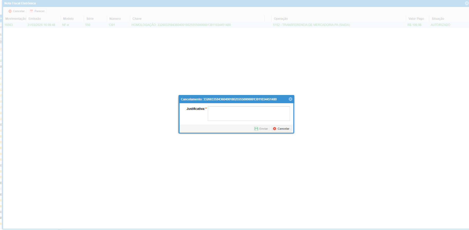 . Depois só preencher a justificativa de cancelamento da Nota e Enviar.