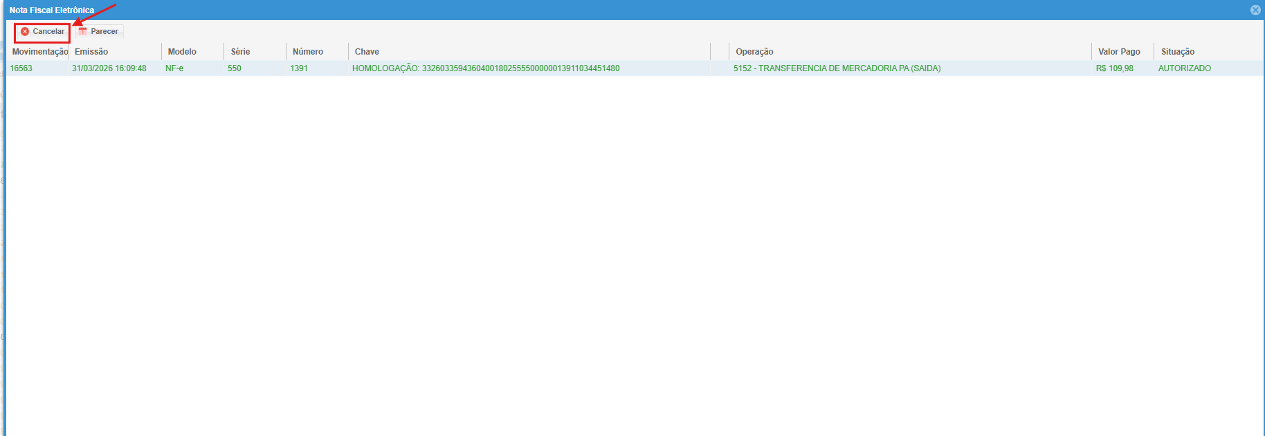 Esta funcionalidade permite realizar o Cancelamento de NF-e realizando a invalidação de Notas Fiscais Eletrônicas que já obtiveram autorização de uso pela Secretaria da Fazenda (SEFAZ), mas cujas operações comerciais não foram concretizadas.