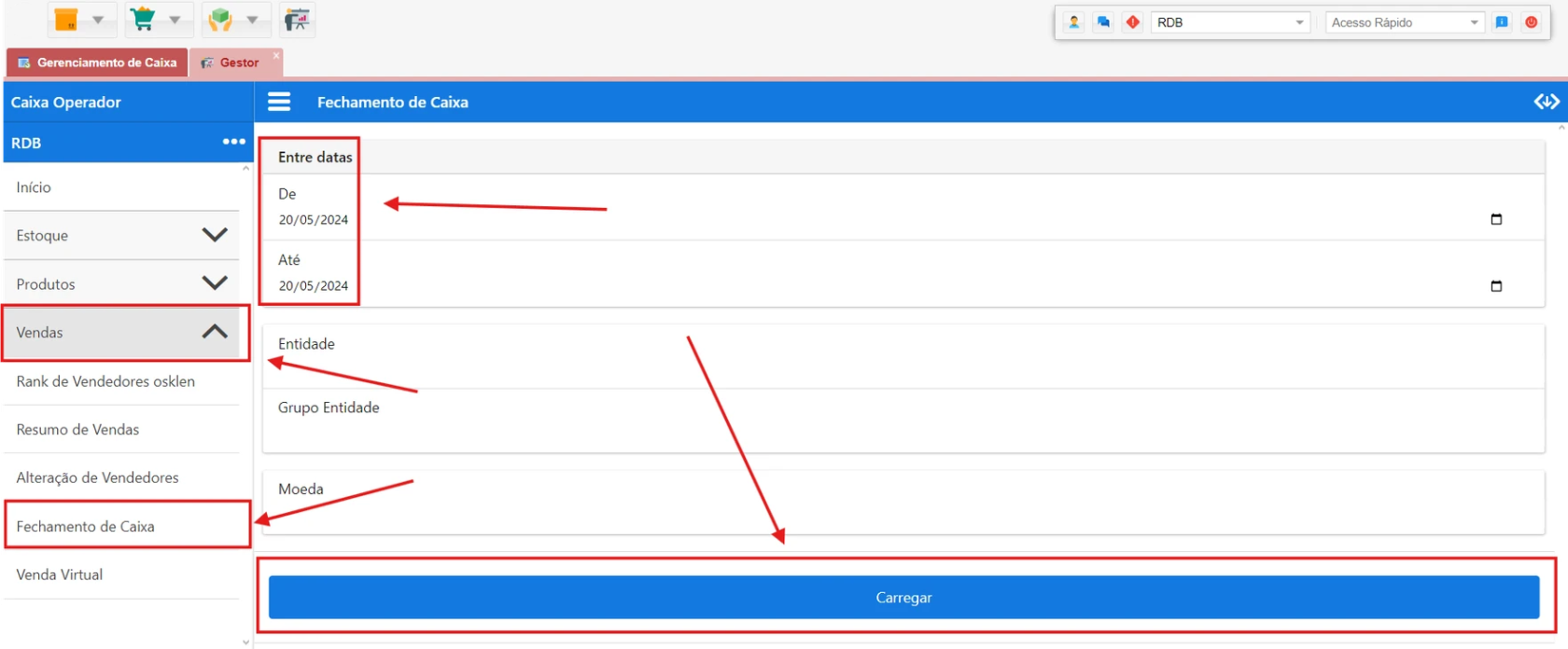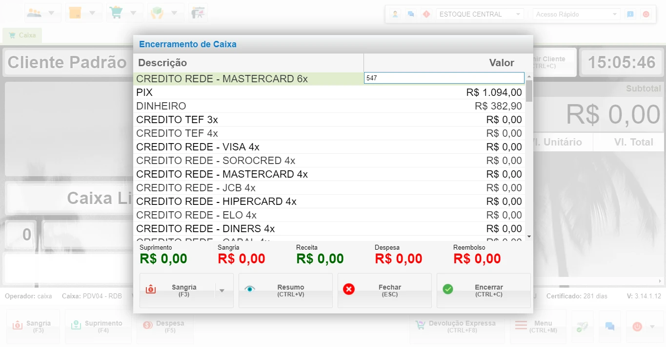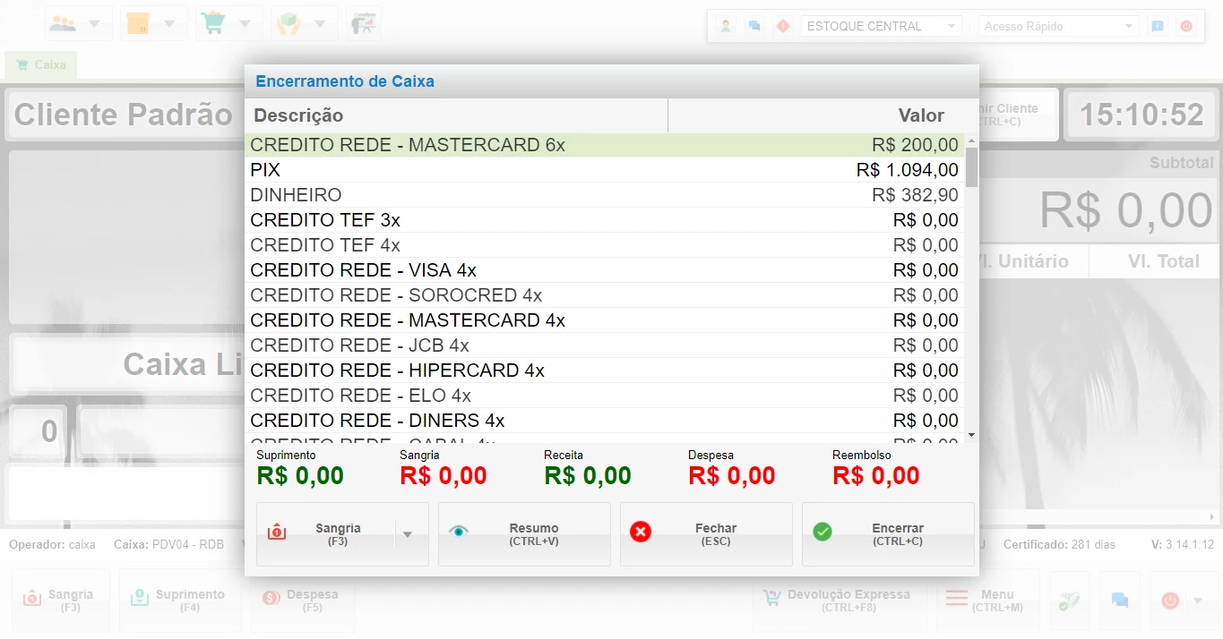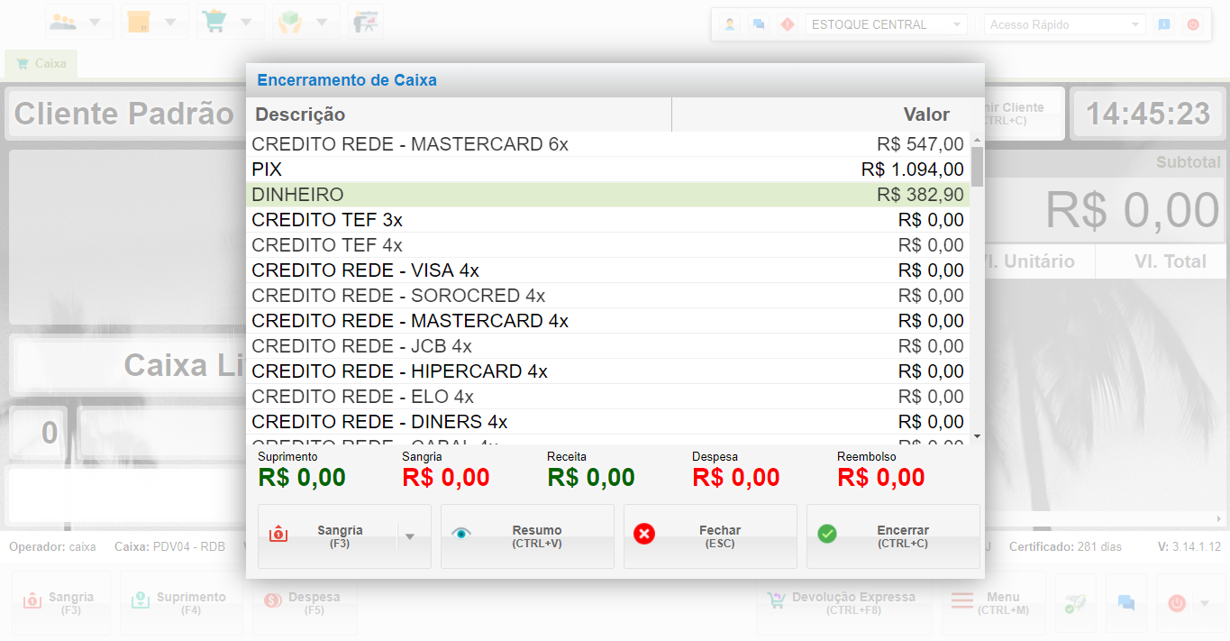 - Acesso ao Encerramento de Caixa