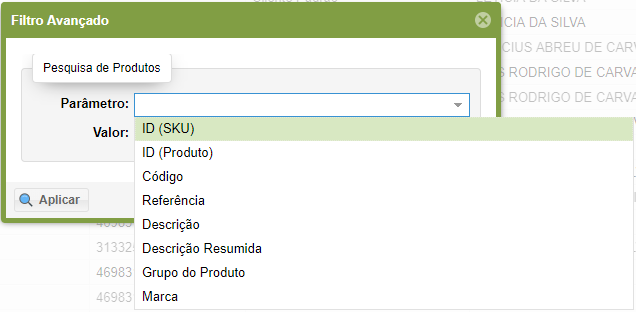 Caso precise realizar uma busca por produto, utilize o Filtro de busca avançado localizado no canto superior direito da tela
