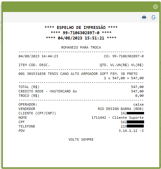 - Isso exibirá o espelho da venda, mostrando todos os detalhes da transação.