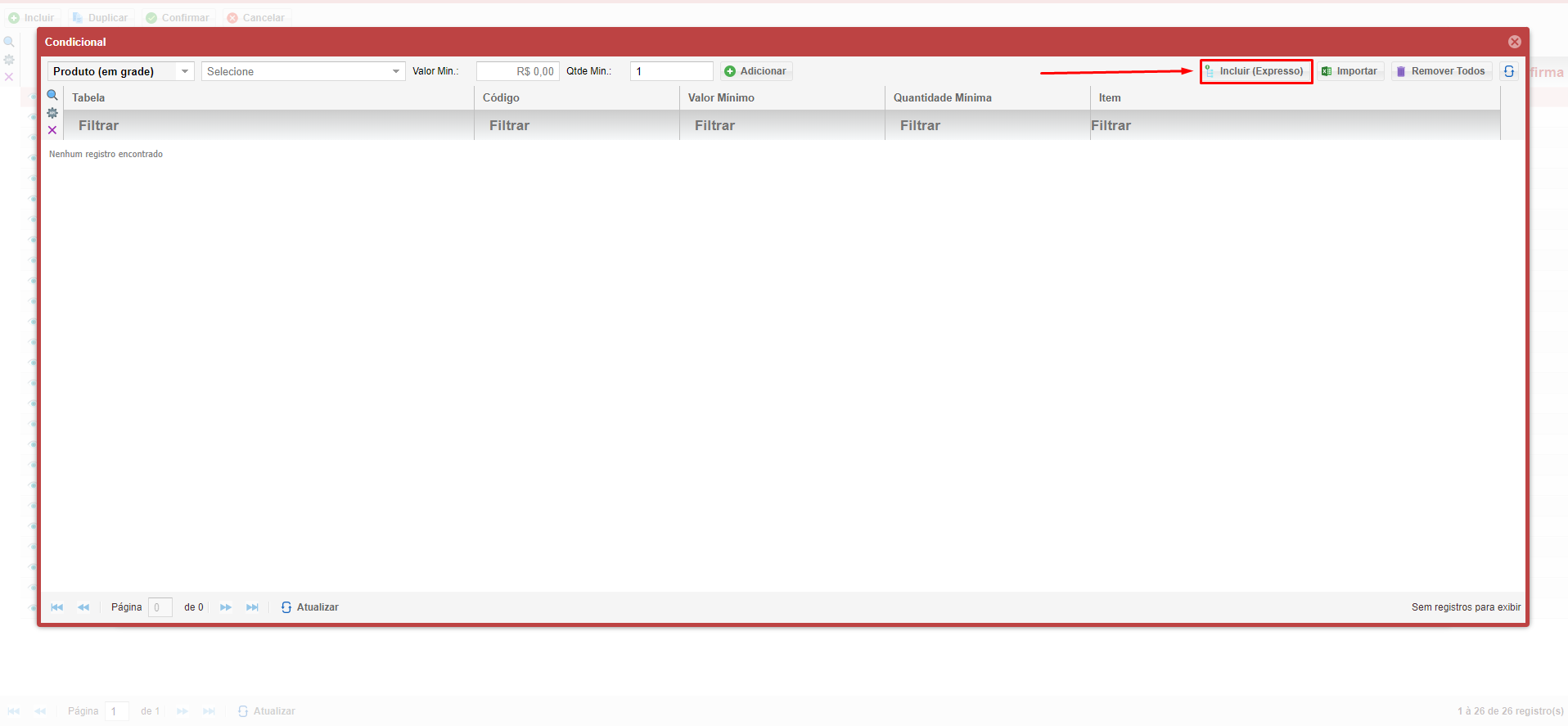 • Na interface de edição, clique no botão Incluir Expresso