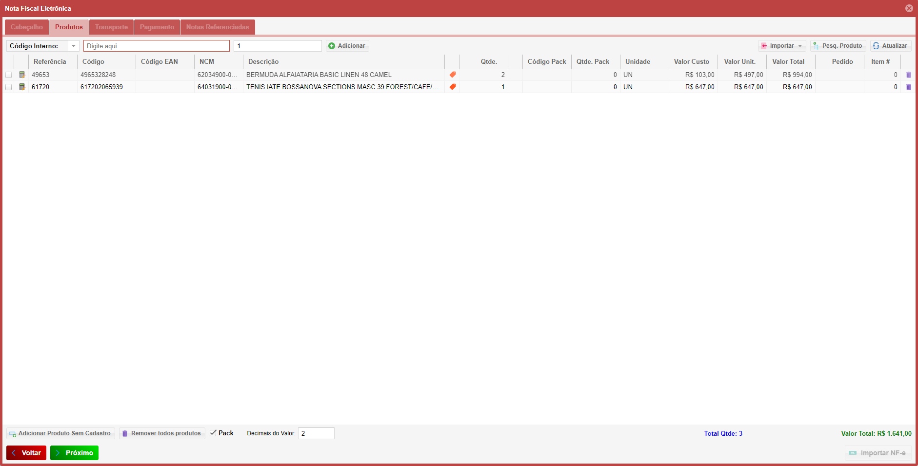 - Após adicionar os produtos, clique em Próximo novamente.