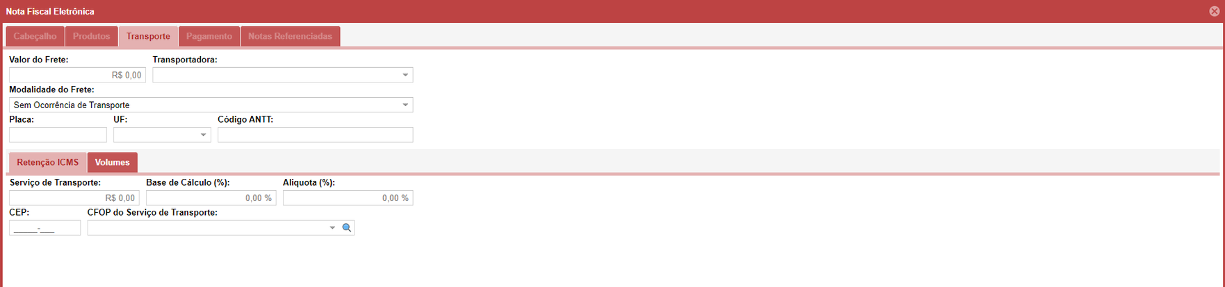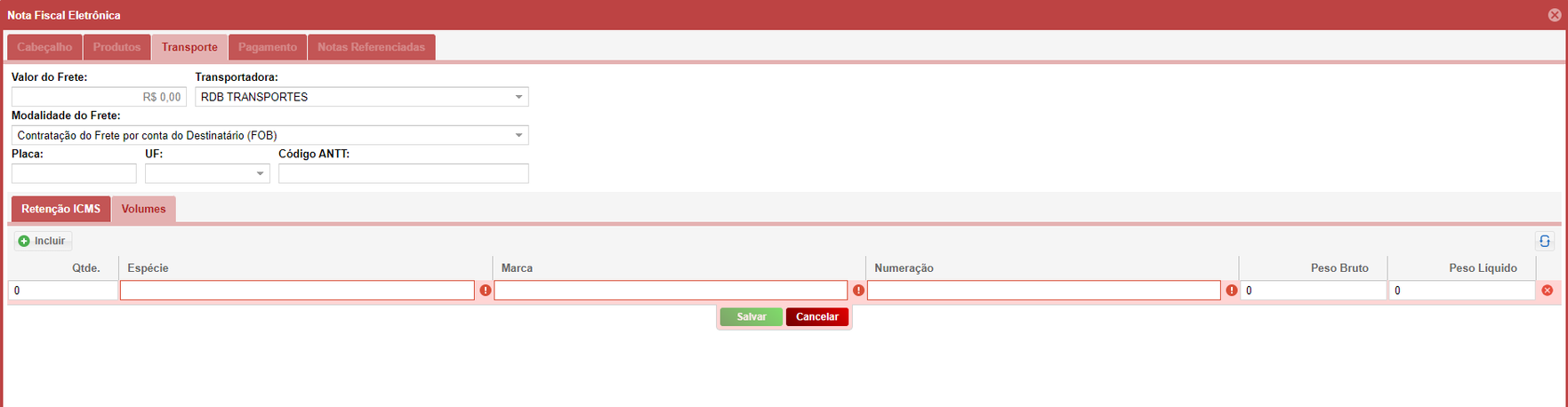 - Deixe o campo Transportadora vazio.