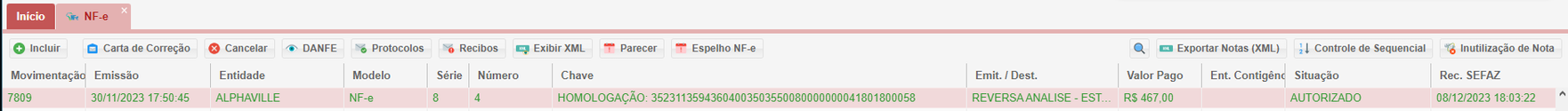 Acessar Controles Fiscais (NF-e)