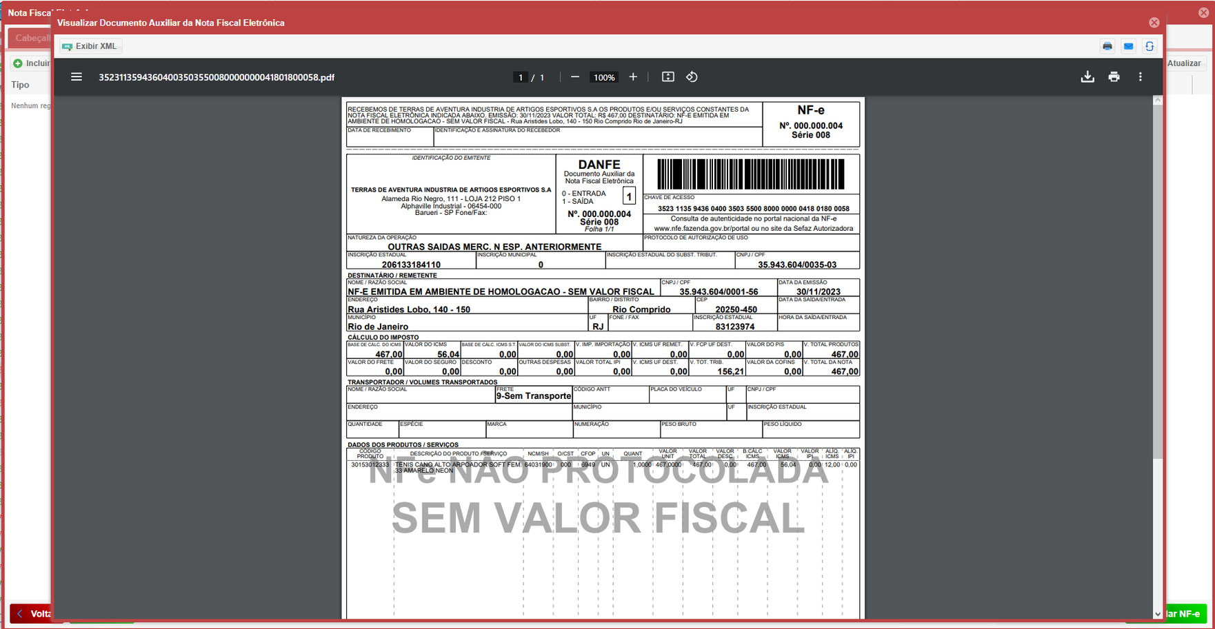 - O sistema gerará uma Pré DANF-e, uma nota sem valor fiscal, para revisão antes da emissão. Pode baixar em PDF ou imprimir.