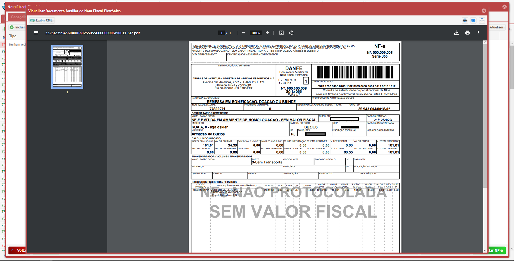 - Clique em Pré-Visualizar DANFe para gerar uma prévia da nota sem valor fiscal.