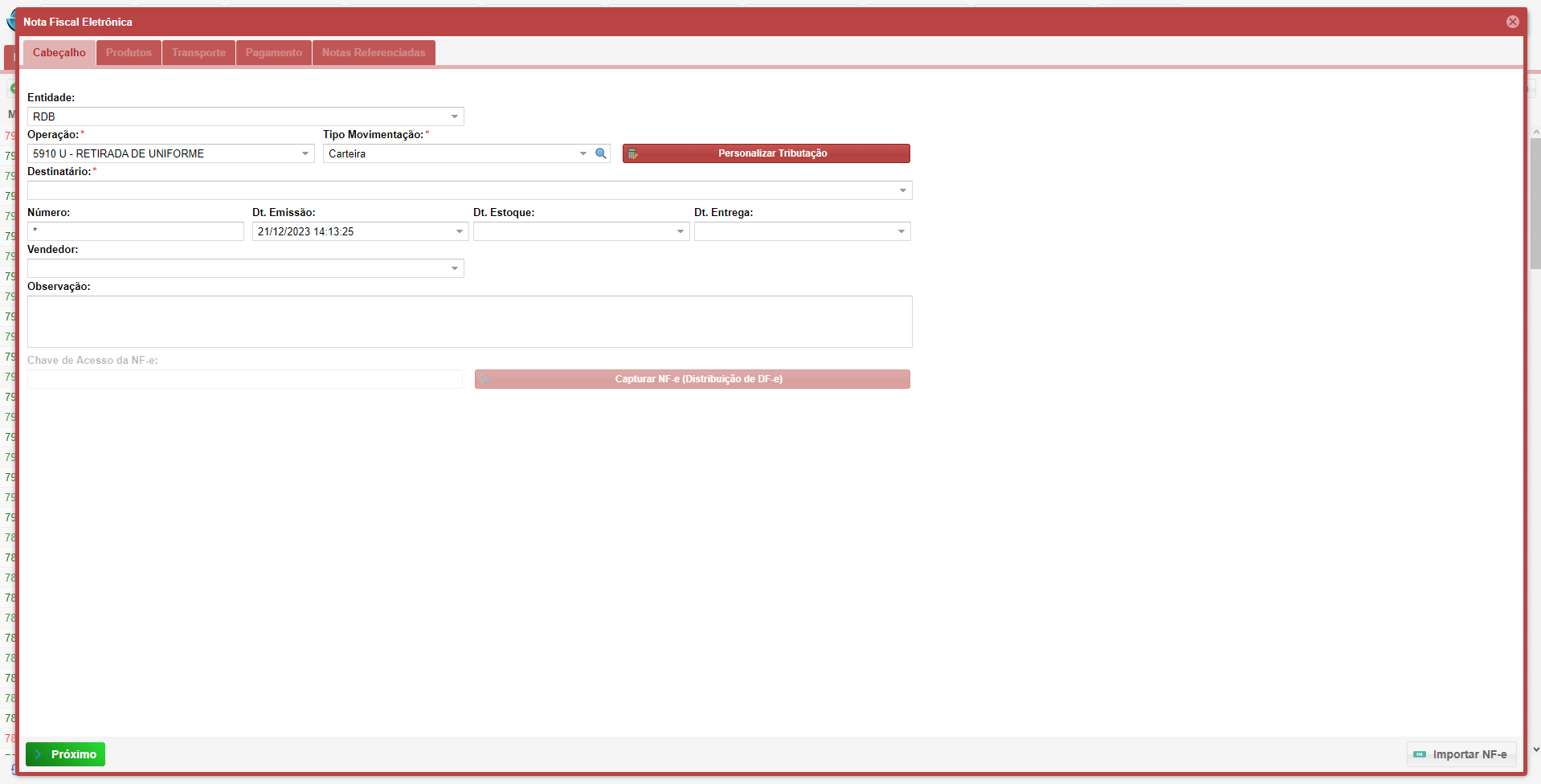 Na tela de inclusão da NF-e, preencha os seguintes campos:
