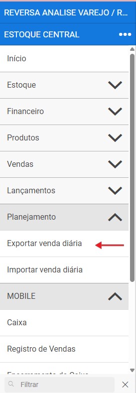 - Clique em Exportar Venda Diária.