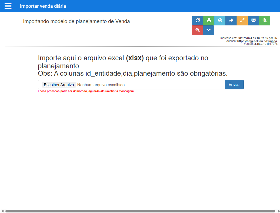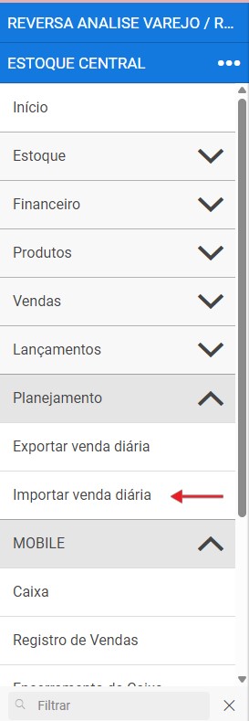- Volte ao módulo de Planejamento no sistema e clique em Importar Venda Diária.