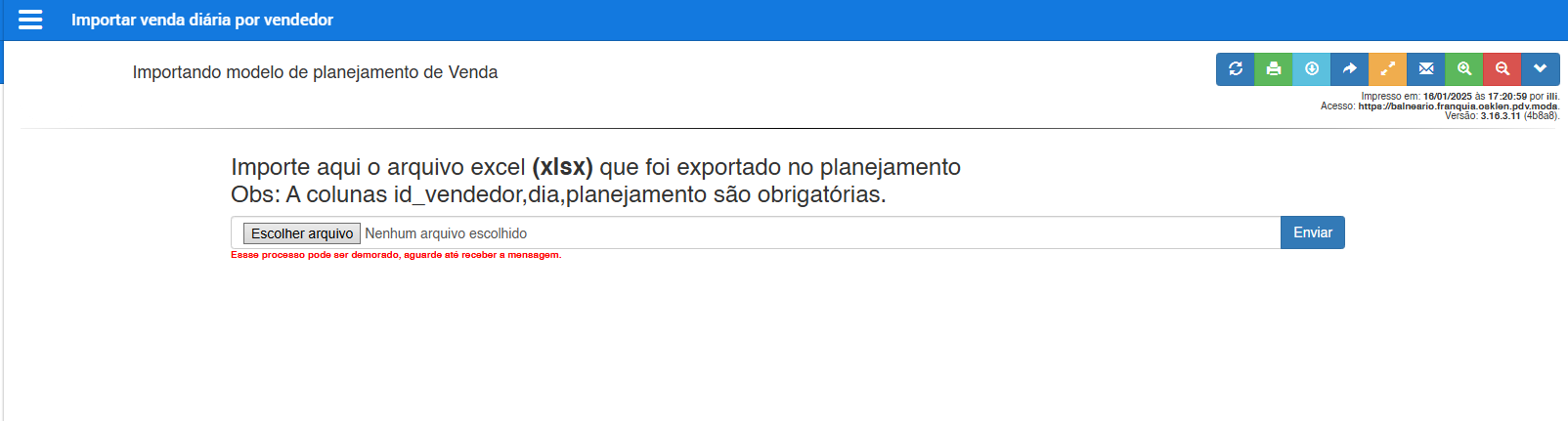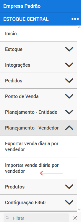 - Volte ao módulo de Planejamento - Vendedor no sistema e clique em Importar Venda Diária por vendedor.