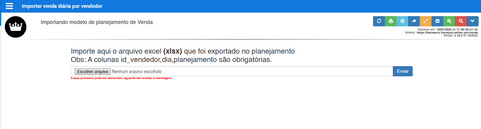 • Volte ao módulo de Planejamento - Vendedor no sistema e clique em Importar Venda Diária por vendedor.