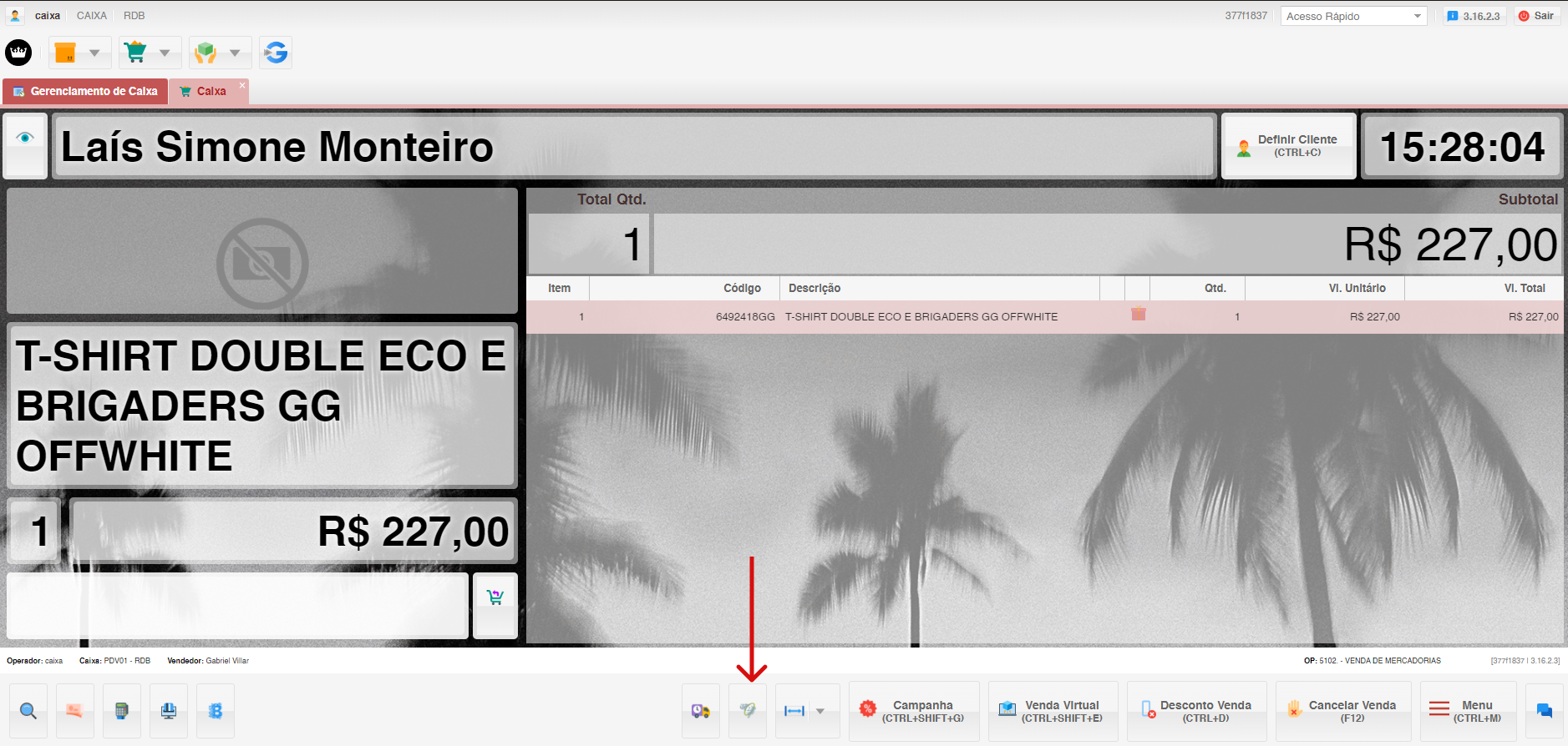 • O sistema solicitará o código do vendedor. Se não lembrar o código, pressione "ENTER" para obter uma lista de vendedores cadastrados. Selecione o vendedor e clique em "Confirmar".