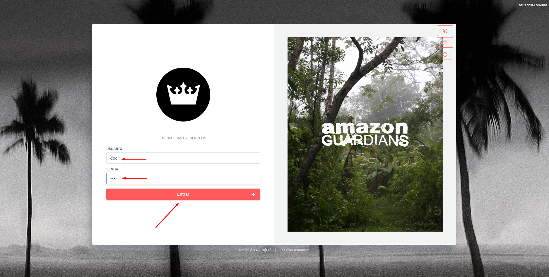 - Insira seu usuário e senha.
