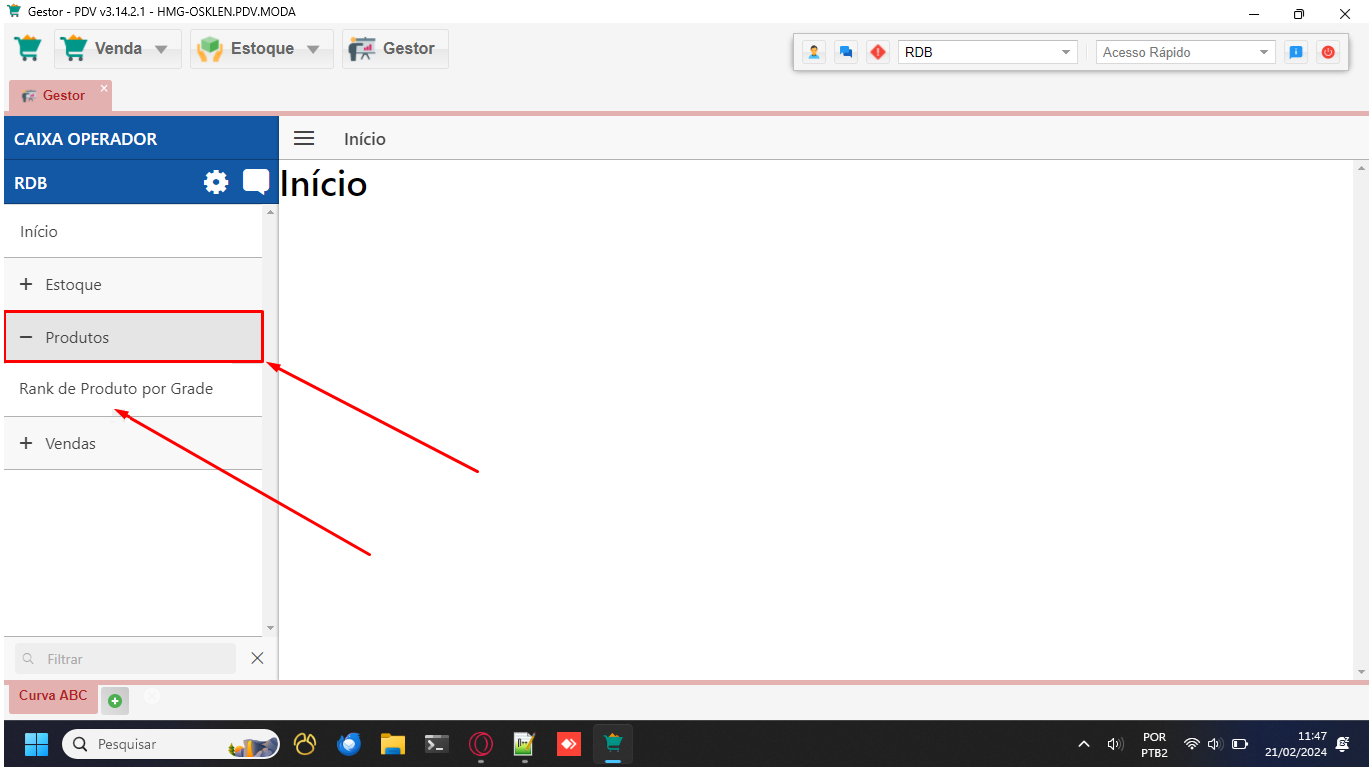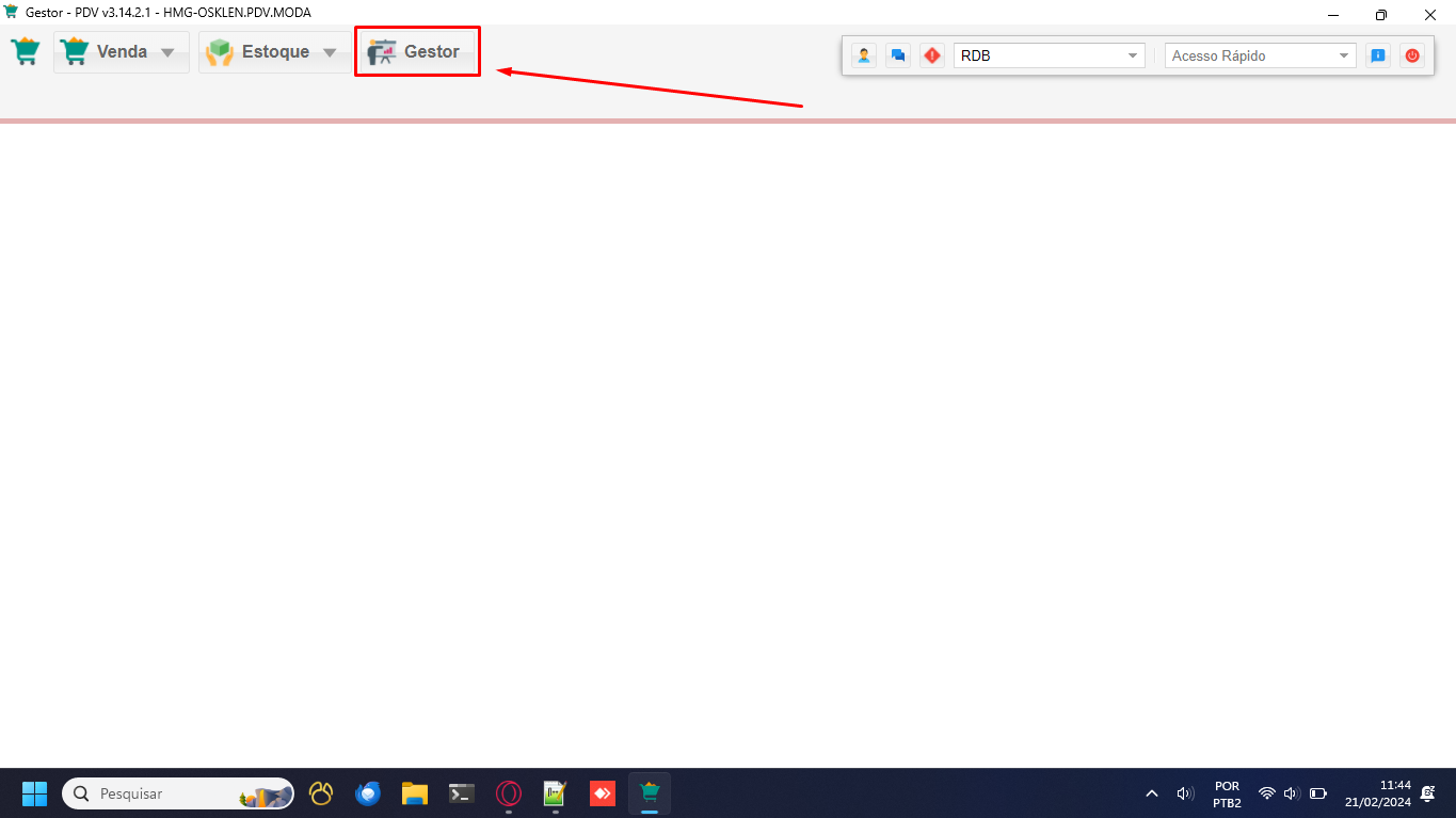 - Inicie acessando o módulo "Gestor" a partir da interface principal do PDV.