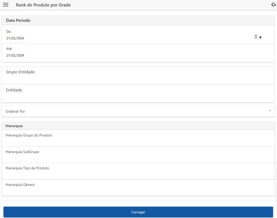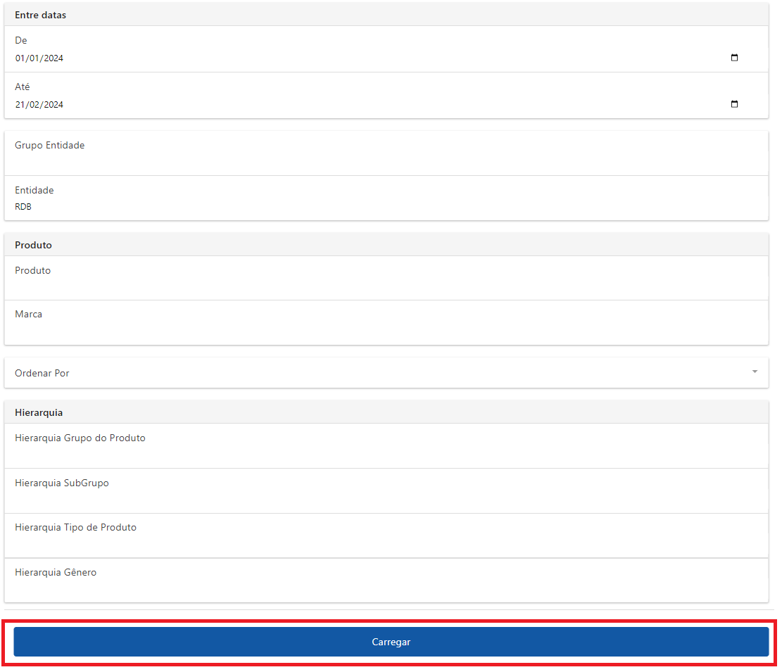 - Após definir os filtros desejados, clique em “Carregar” para gerar o relatório baseado nos critérios selecionados.