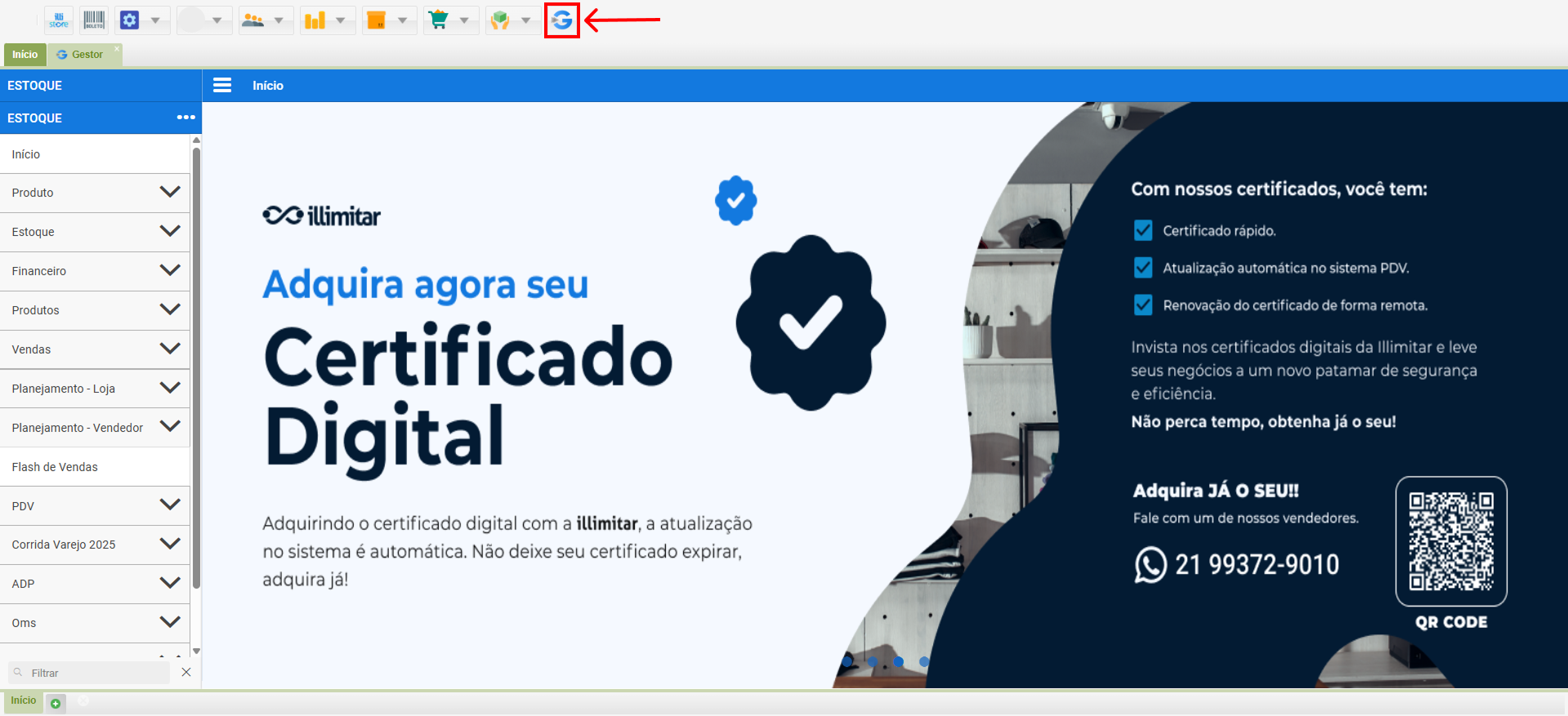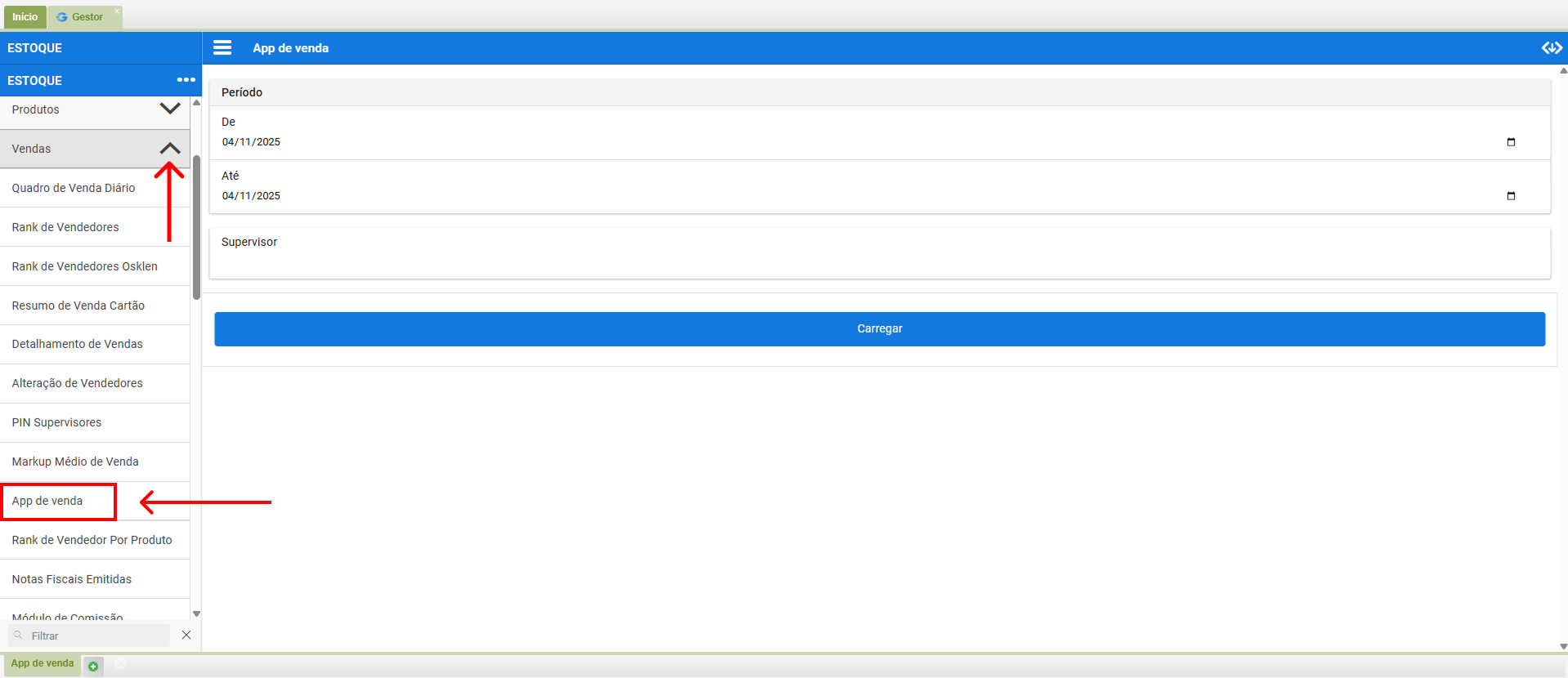 - Ao acessar o Gestor, no módulo "Vendas" e, em seguida, "App de Vendas".