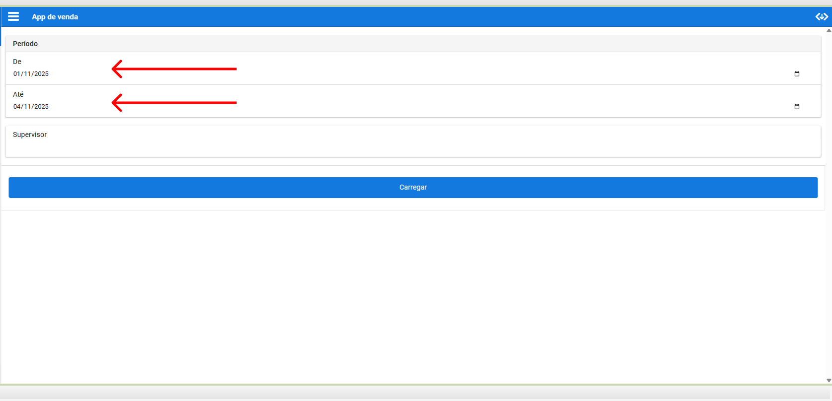 Clique no campo De para abrir o calendário e selecionar a data inicial.