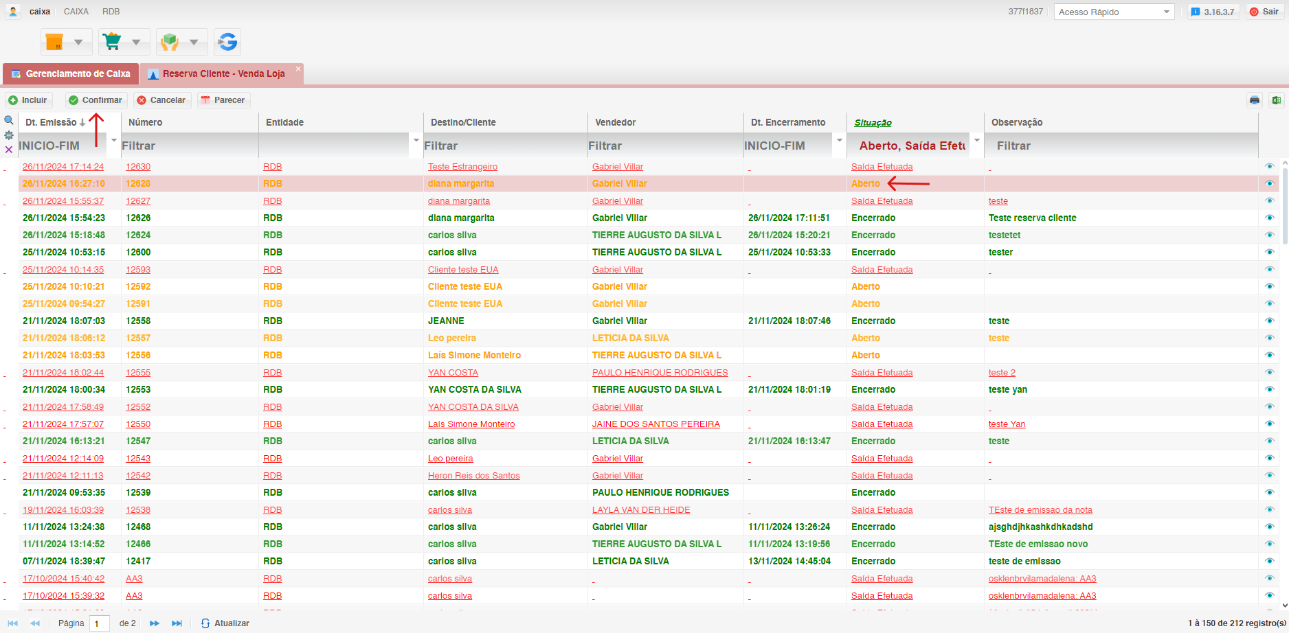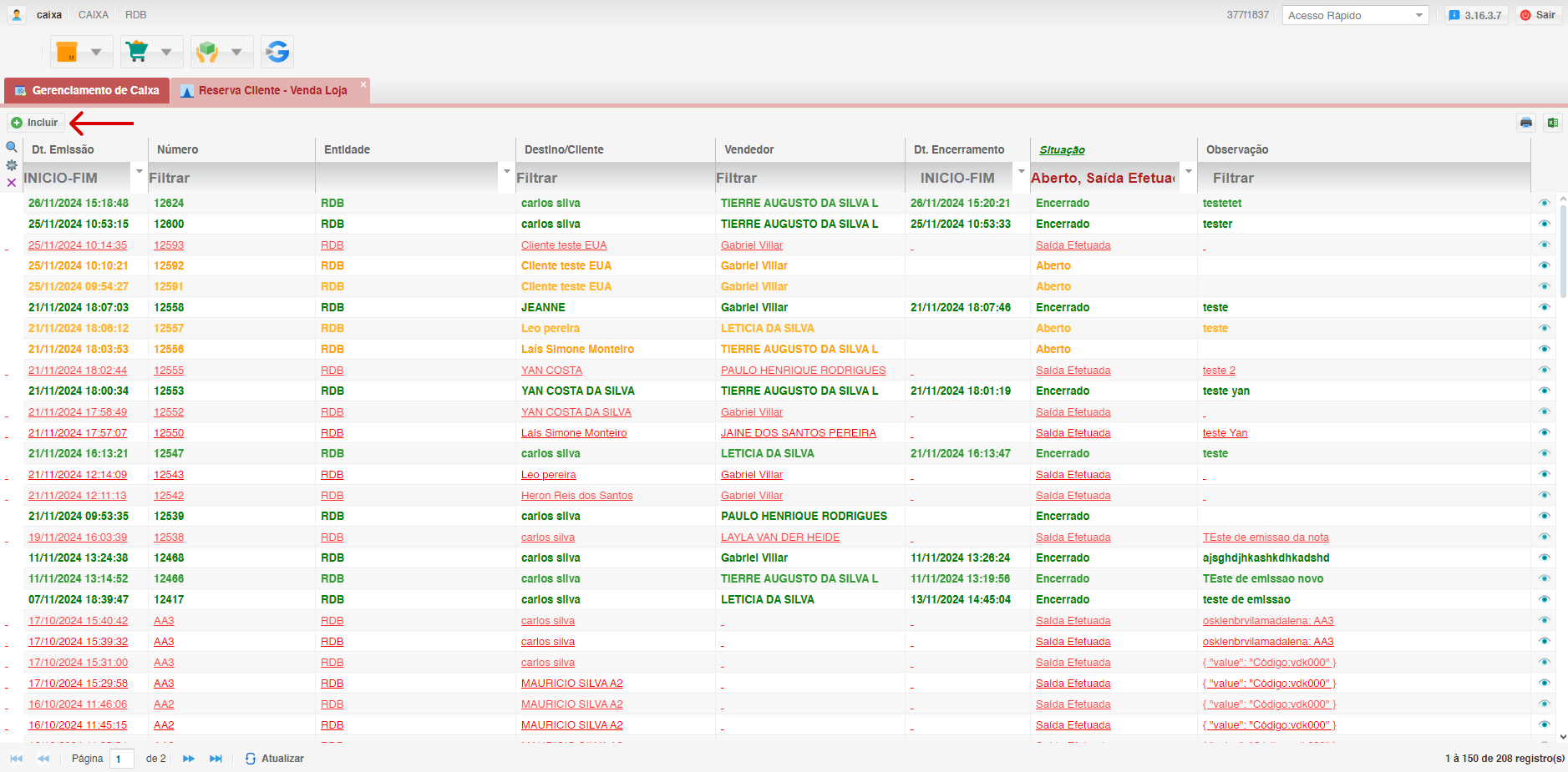 - Ao não finalizar o preenchimento dos campos na tela de inclusão o pedido ficará em "Aberto"