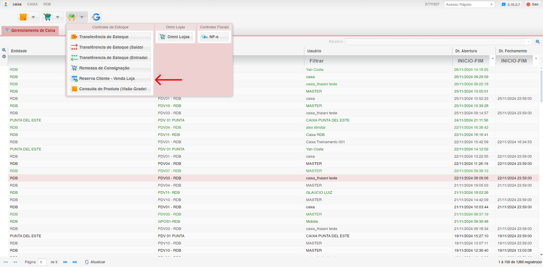 - Selecione o módulo Reserva Cliente - Venda Loja.